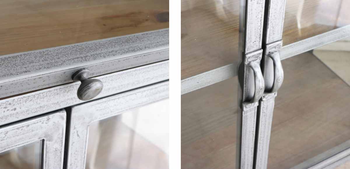 ヴィンテージ感を醸し出すスチールフレームと取っ手。丁寧にエイジング加工を施され、細部にまでこだわりを感じられます。