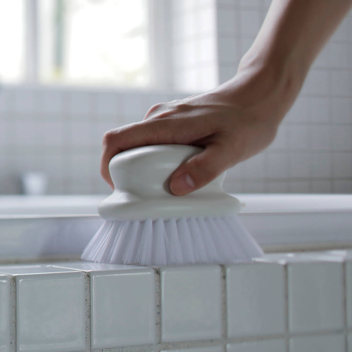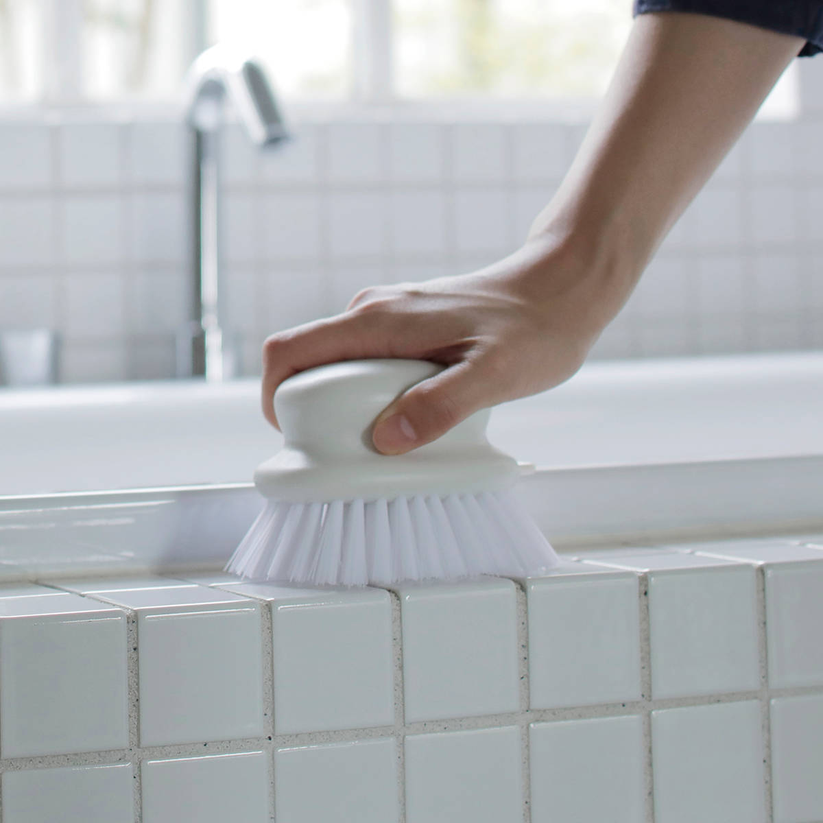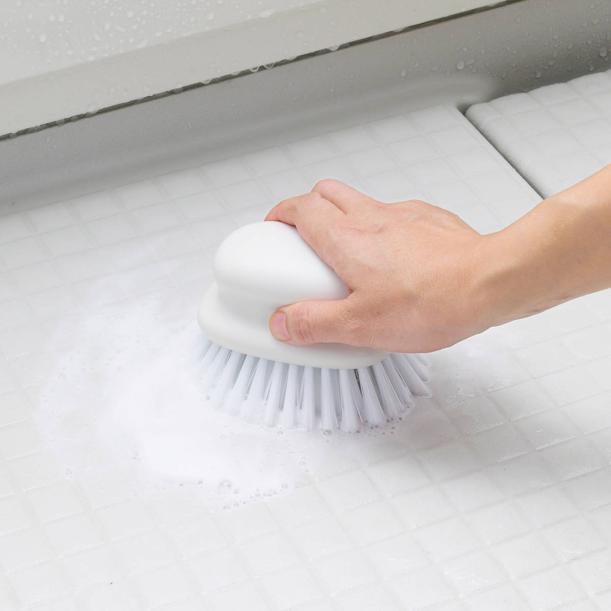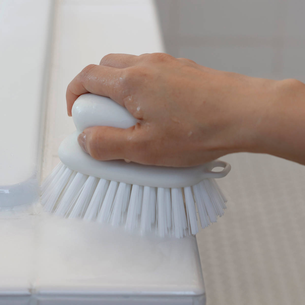 握りやすく、力の入れやすい形のお掃除ブラシです。持つ部分とブラシが近く、洗いたい場所に毛先を当てやすく手が疲れにくいです。