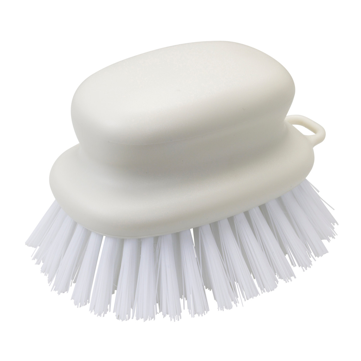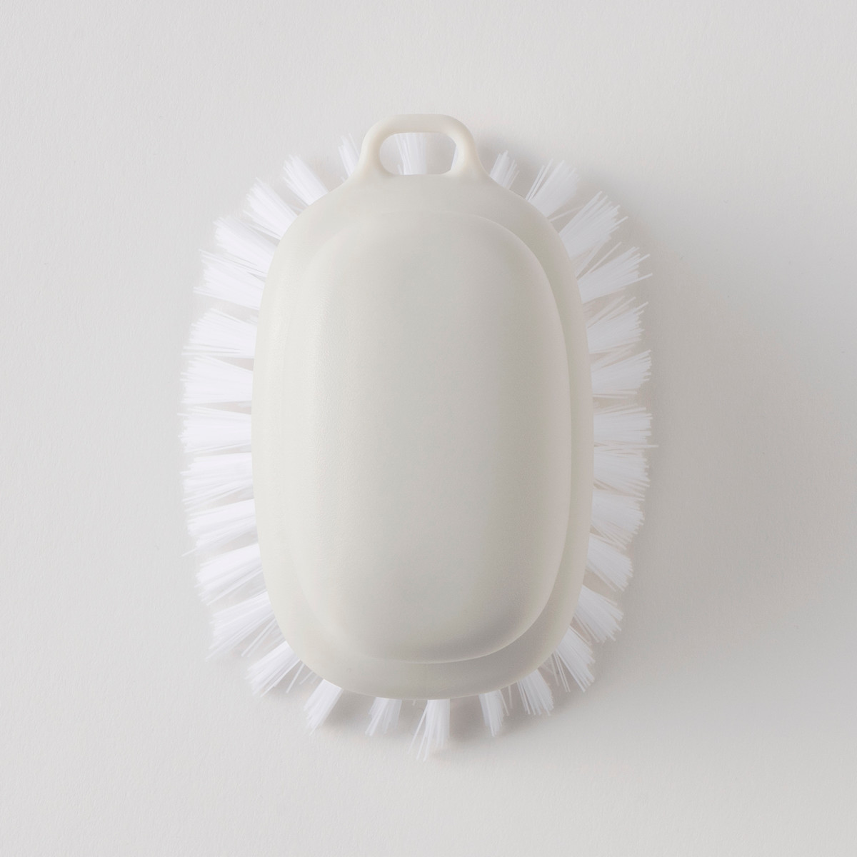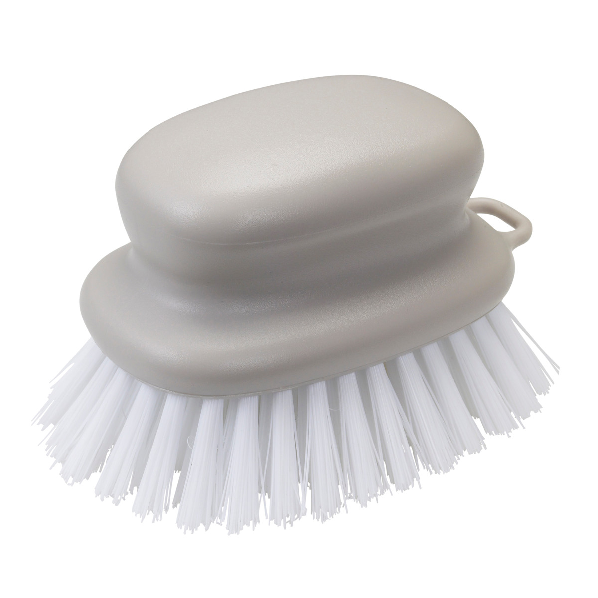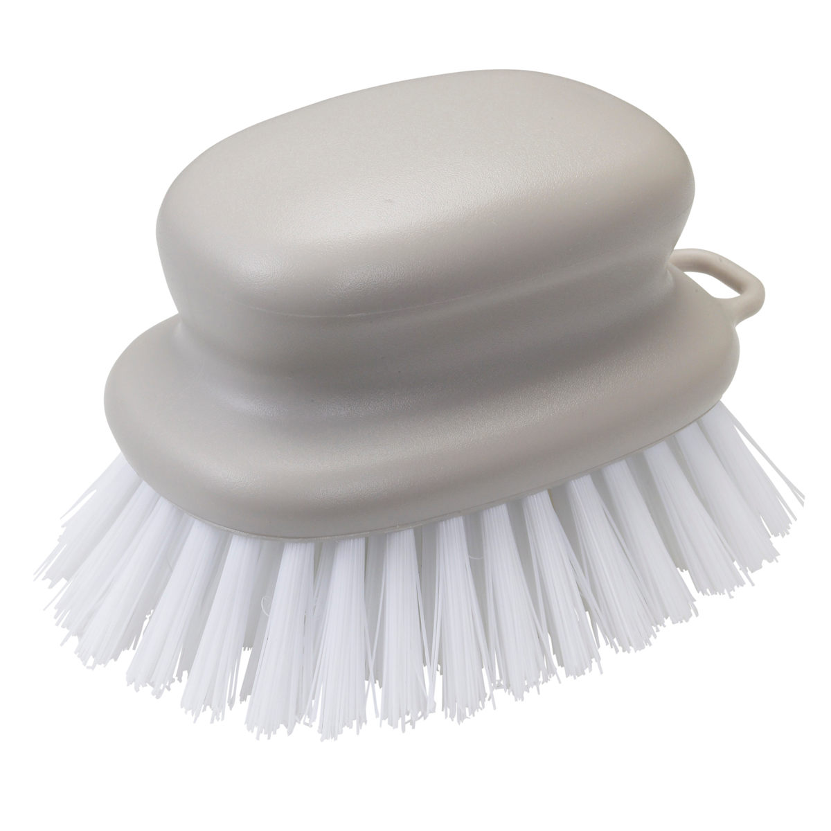 握りやすく、力の入れやすい形のお掃除ブラシです。持つ部分とブラシが近く、洗いたい場所に毛先を当てやすく手が疲れにくいです。