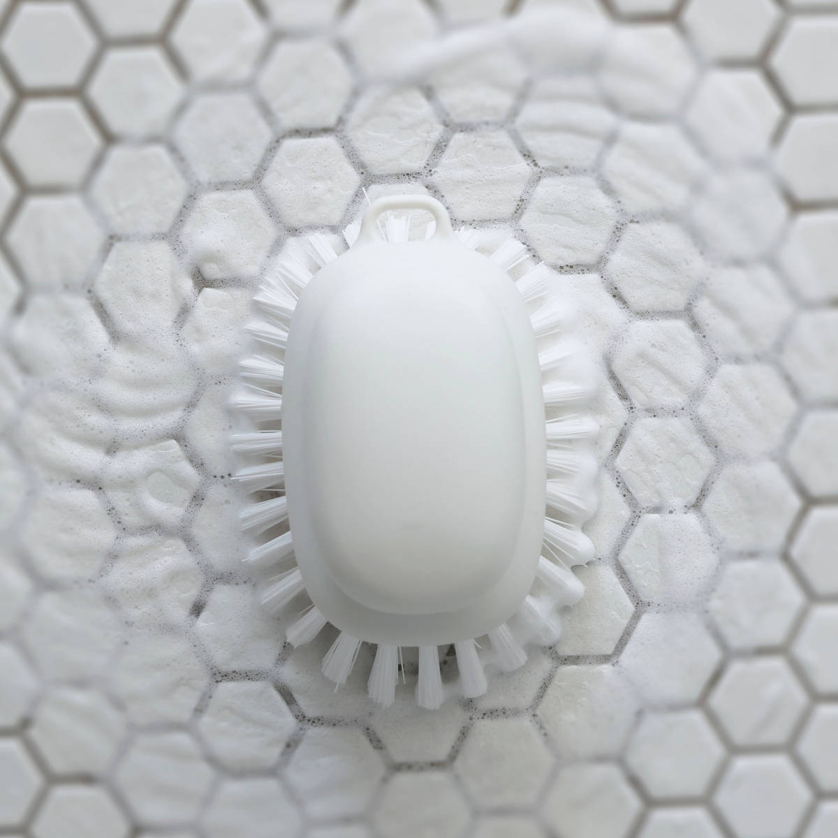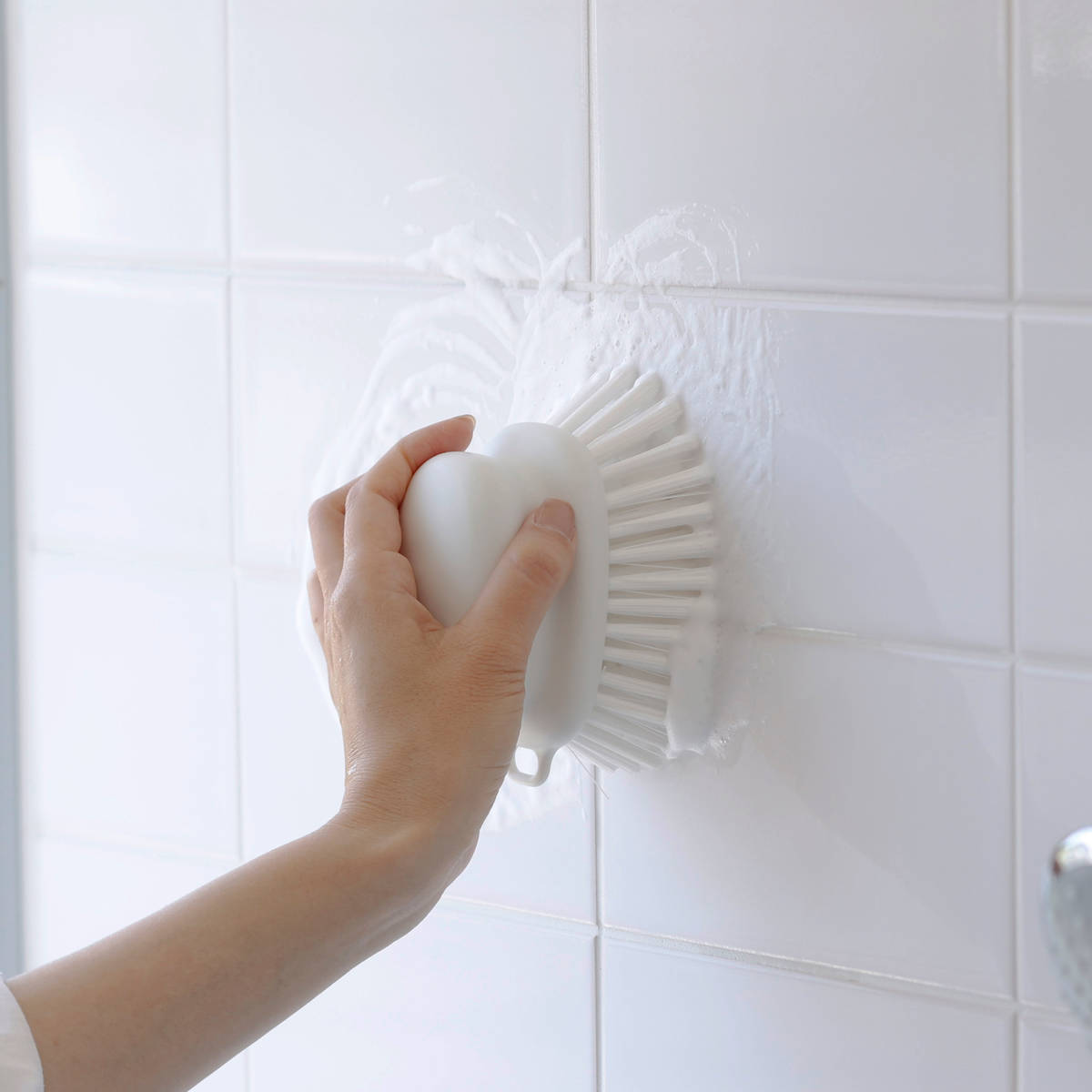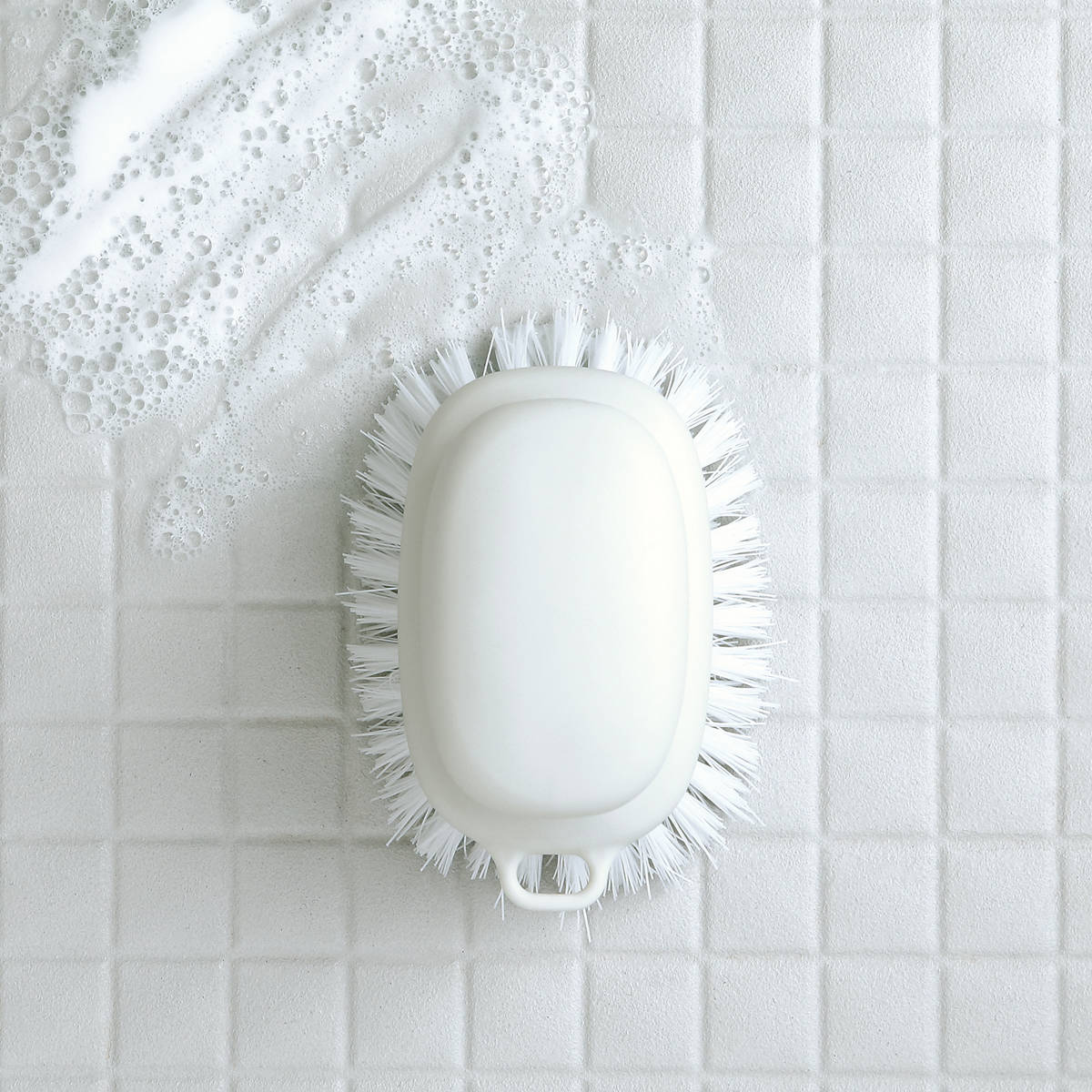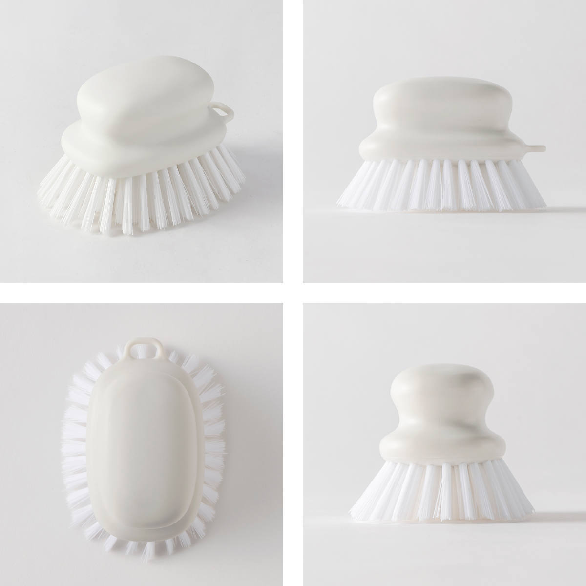 握りやすく、力の入れやすい形のお掃除ブラシです。持つ部分とブラシが近く、洗いたい場所に毛先を当てやすく手が疲れにくいです。
