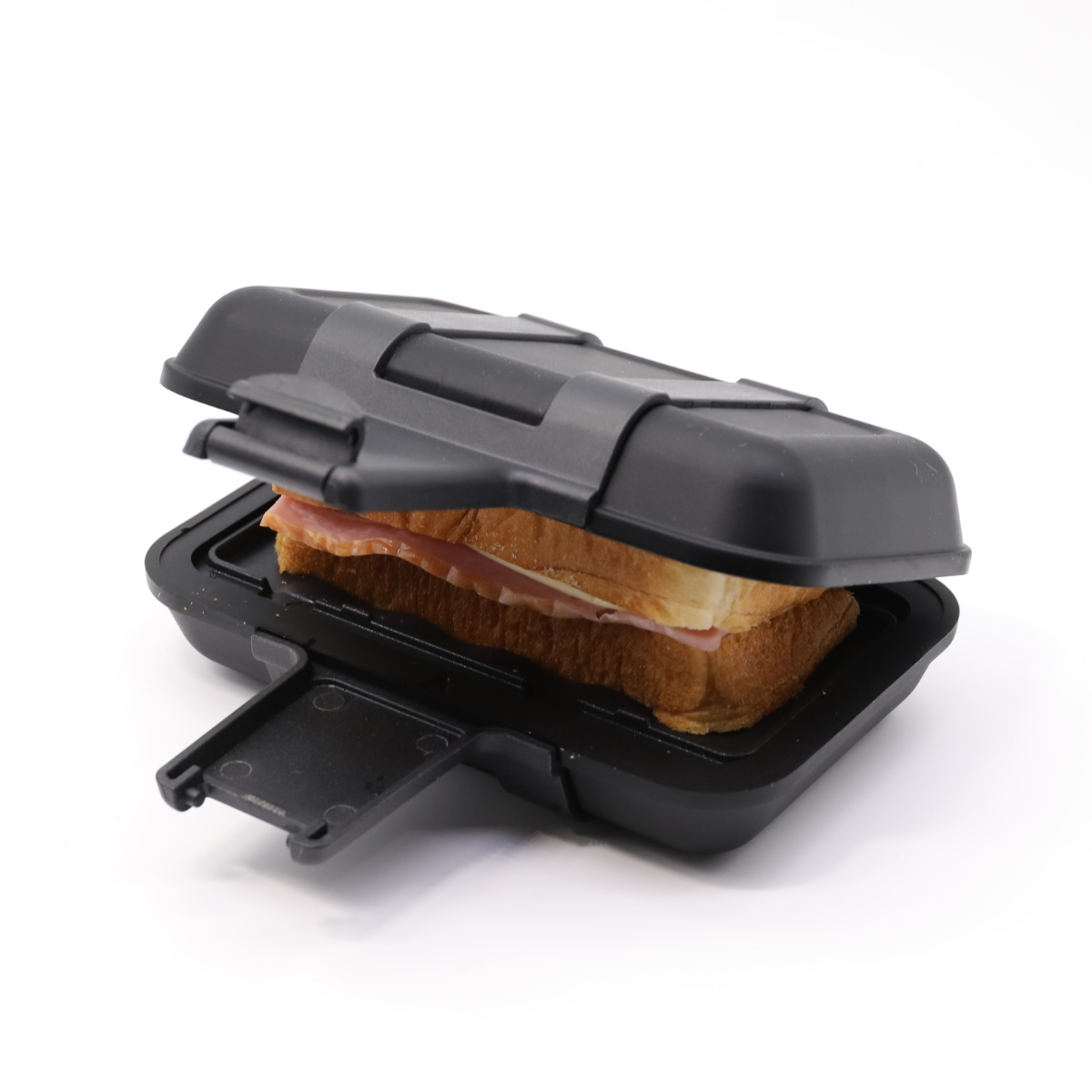 食パンと具材をセットして電子レンジに入れるだけで、トースターを使わずに、短時間でアツアツのホットサンドが手軽に完成します。