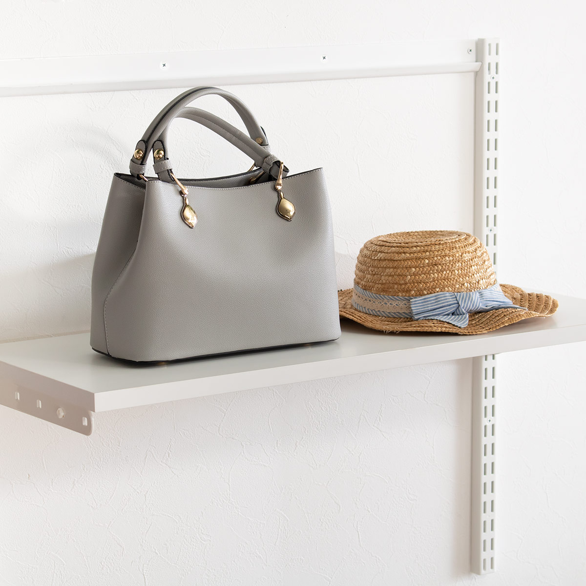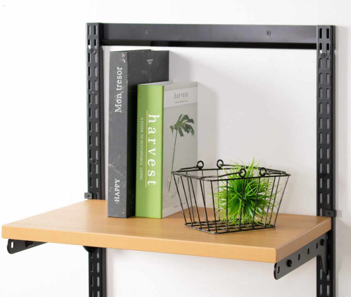 フィットラックは別売りのFKレール(横棒)とFKスリット(縦棒)の両方を壁に設置して、パーツを取り付けます。パーツとなるTSセットは、幅【45・60・75・90cm】の4種類・奥行【30・40・45・60cm】4種類から収納場所に合わせて選べます。ライフスタイルに合わせて高さや横幅を変えられるので、無駄なスペースなく収納量を上げることができます。