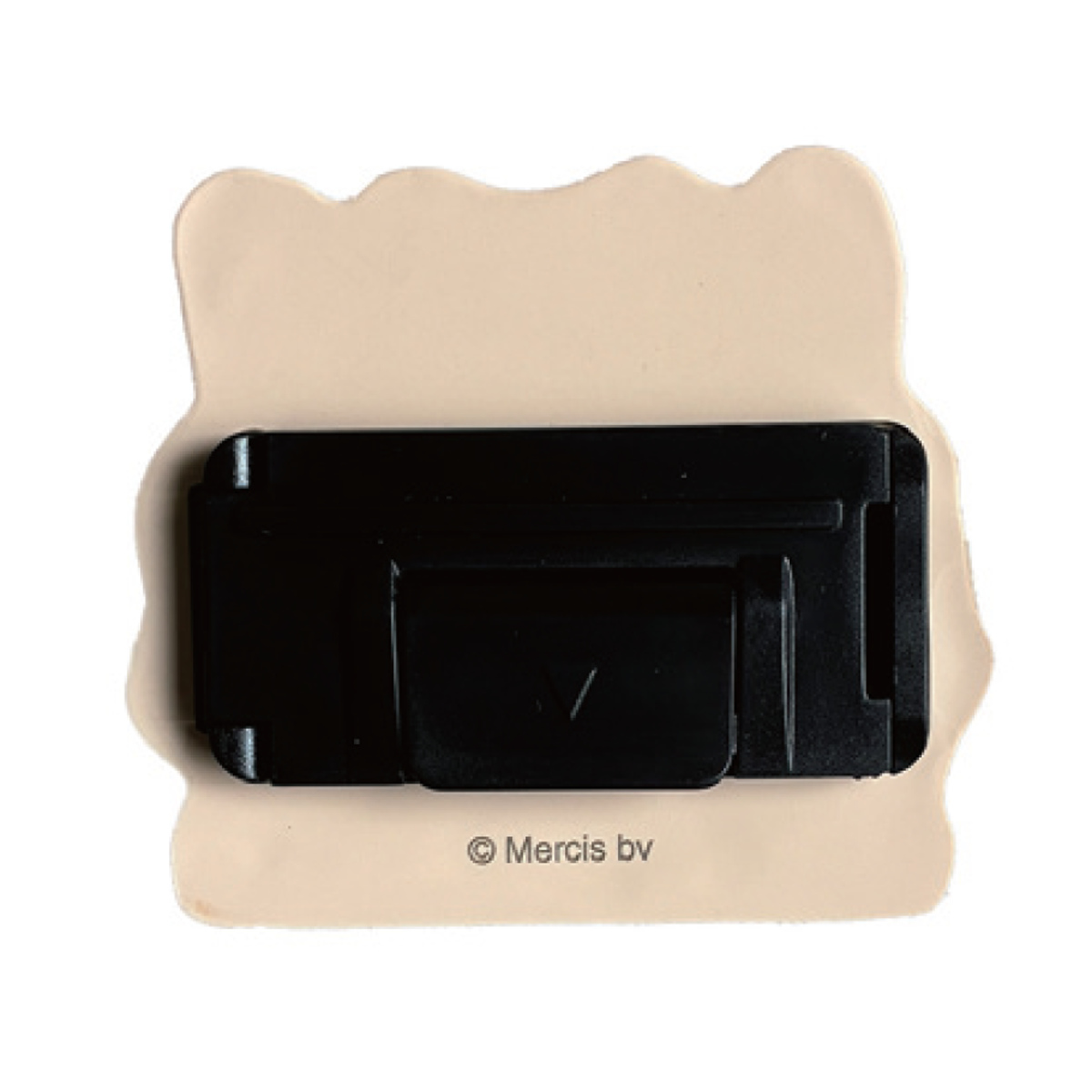 裏側のふたを開けてシートベルトを挟んでカチッと留めるだけで簡単に取り付けできます。