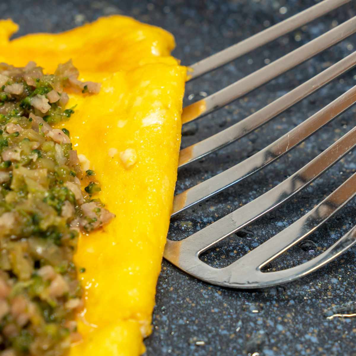 軽量で手首が疲れにくく、毎日使いに最適です。楽に振れるので、炒め物やオムレツもスムーズに焼き上げられます。