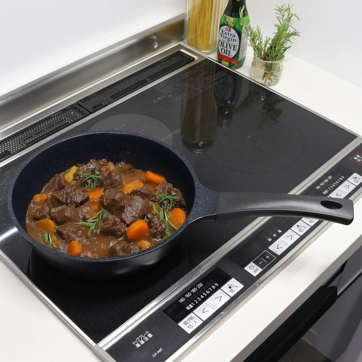 IHクッキングヒーター、ガスコンロを含むオール熱源対応です。24cmは大きすぎず扱いやすいサイズです。深さがあるので、煮込み料理や汁物にもお使いいただけます。