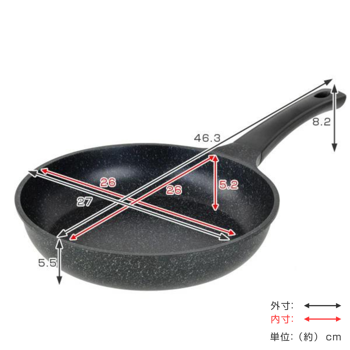 フライパン 26cm IH対応 軽量 ダイヤモンドマーブルコーティング ( 片手鍋 マーブル加工 ガス火対応 調理用品 調理器具 アルミ鍋 26センチ アルミ製 ダイヤモンドマーブル マーブルコート )
