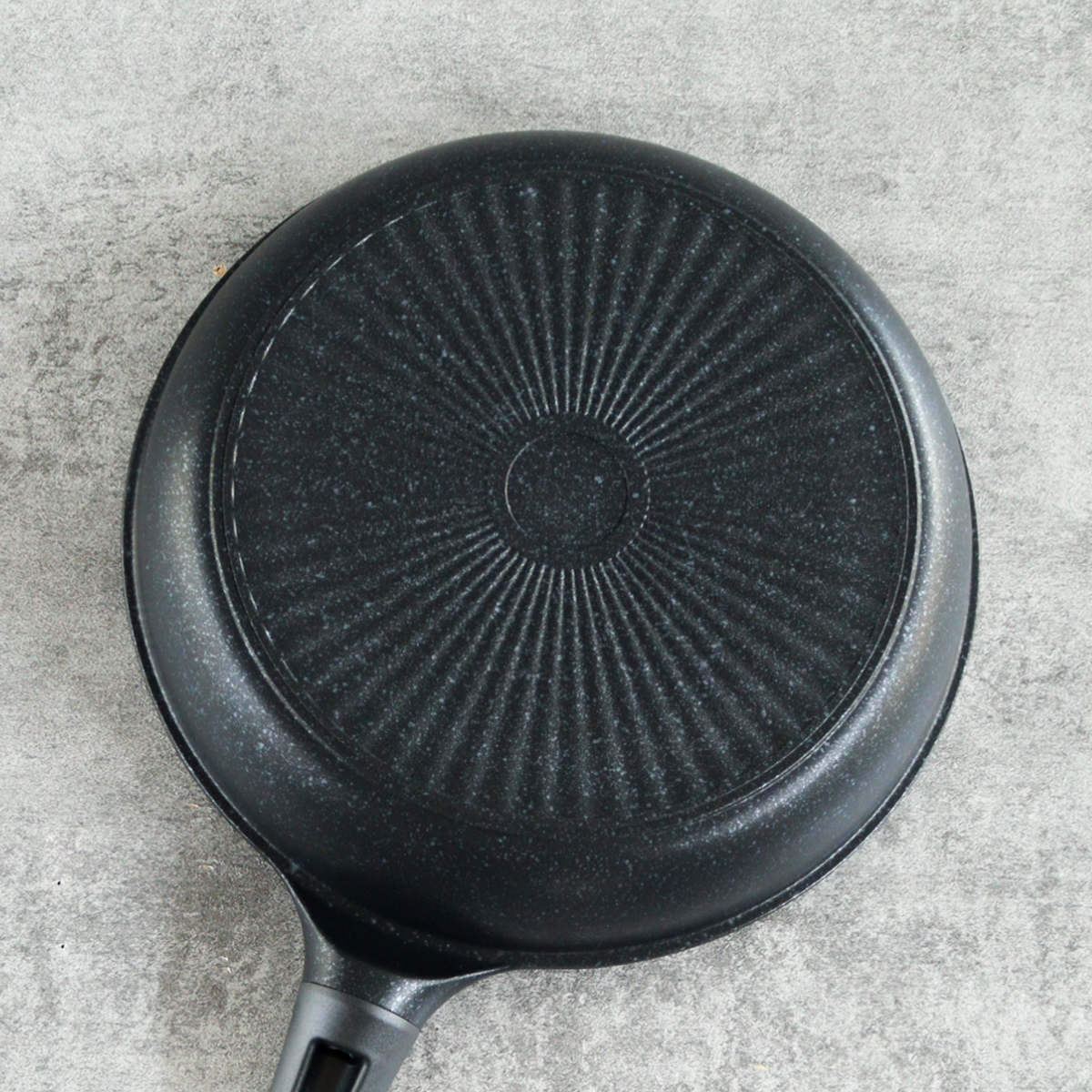 熱伝導率の高いアルミダイキャスト製です。ムラなく火が通るので、ハンバーグや分厚いお肉なども生焼けなく上手に焼けます。
