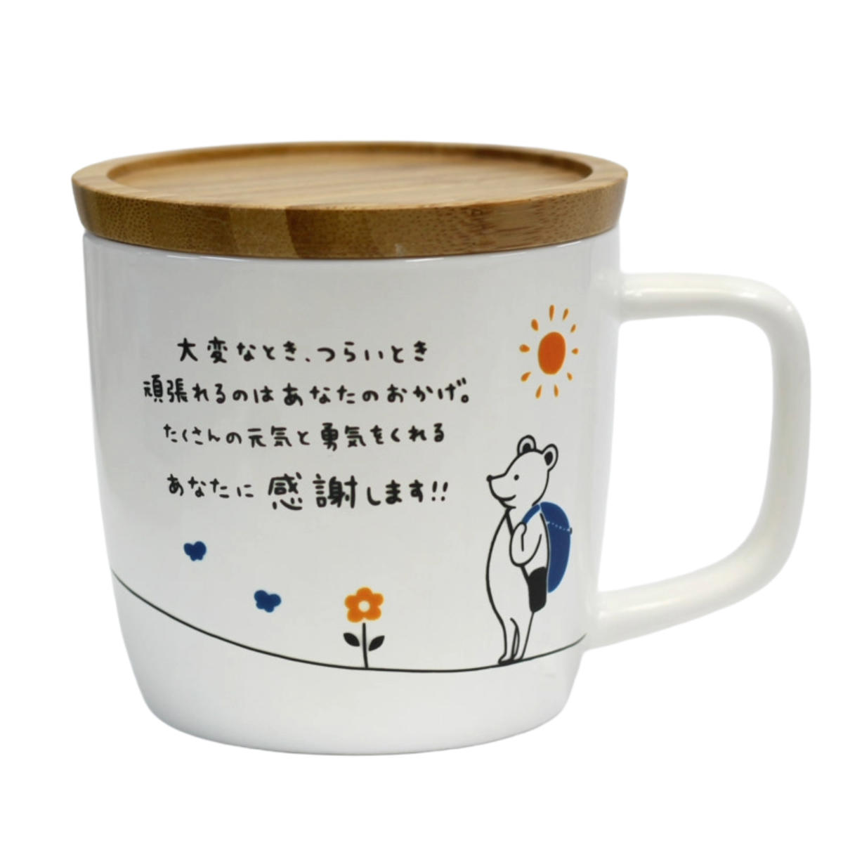 マグカップ 280ml キモチマグ ( 磁器 電子レンジ対応 マグ コップ マグコップ メッセージマグカップ 蓋付き かわいい おしゃれ ) 【感謝】