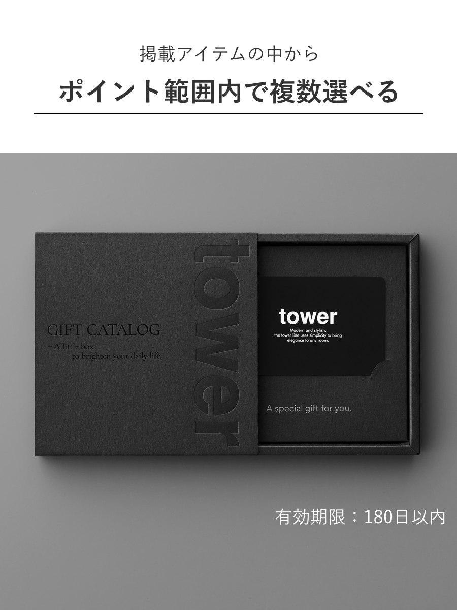 暮らしに役立つtower商品の多彩なラインナップの中からお好きなアイテムを選べるカタログギフトです。キッチン用品からランドリー、インテリア小物まで幅広いカテゴリの商品が揃っています。