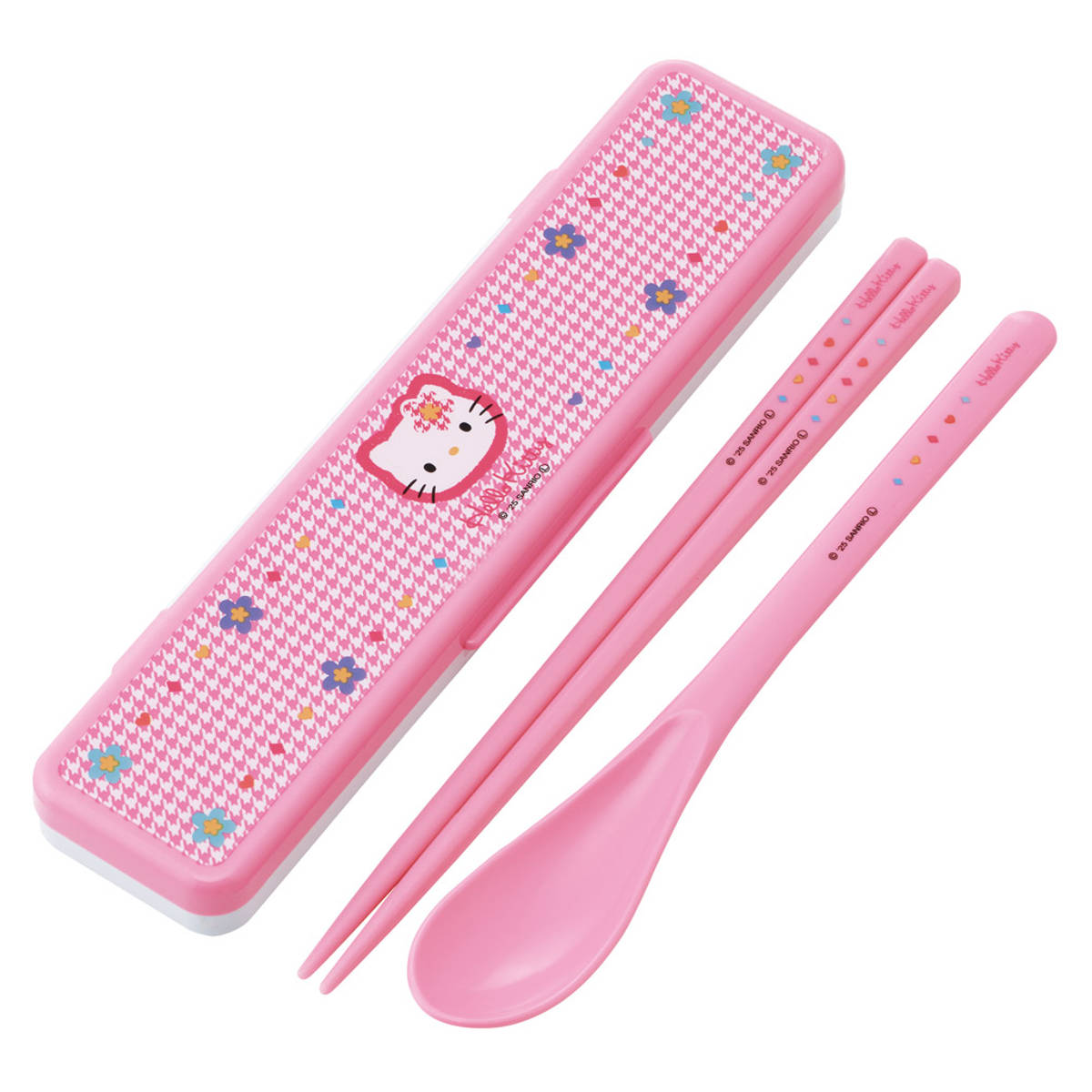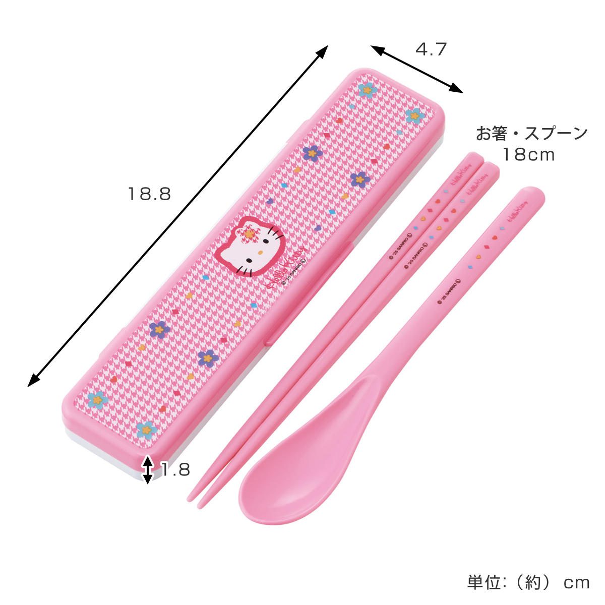 抗菌コンビセット キティ カオハナ 音の鳴らない お箸 スプーン ( 食洗機対応 18センチ カトラリー 抗菌 日本製 食洗機OK カトラリーセット 銀 AG 持ち運び お弁当 弁当 抗菌加工 箸箱 )