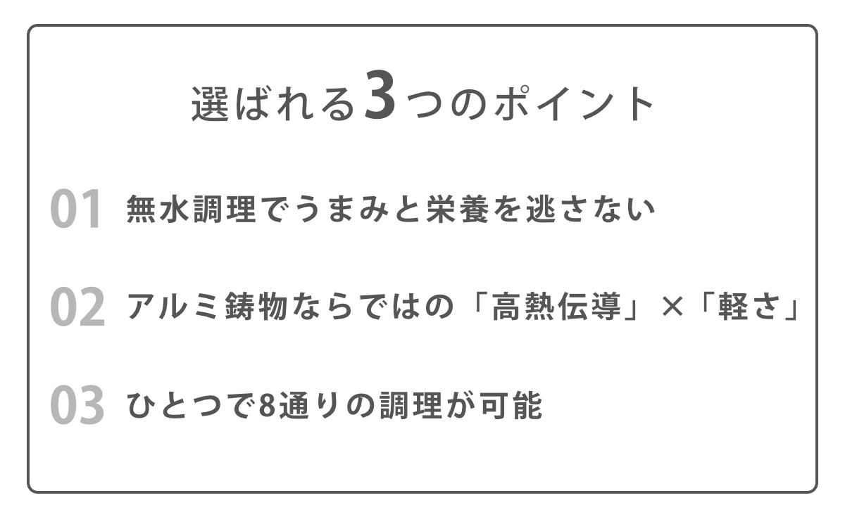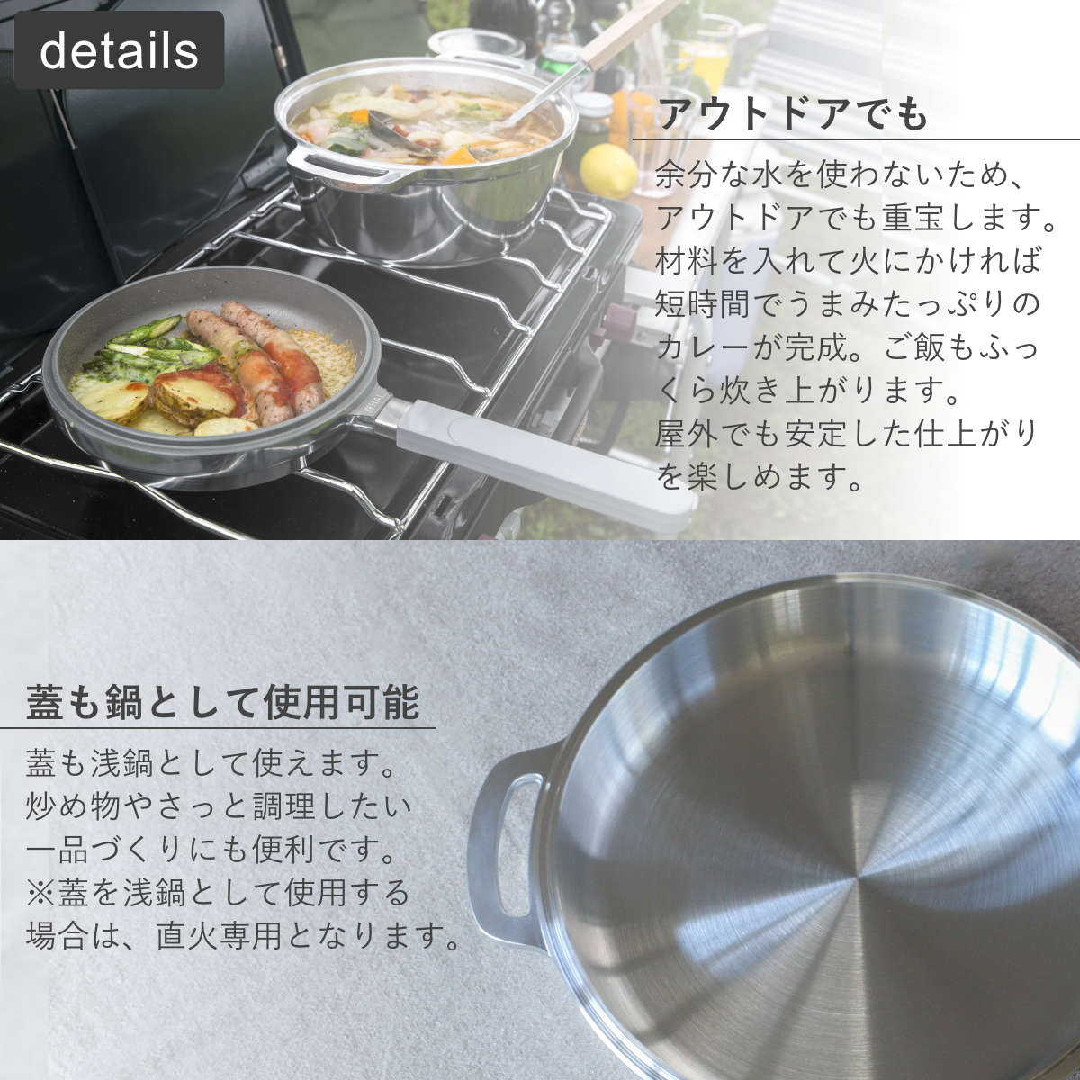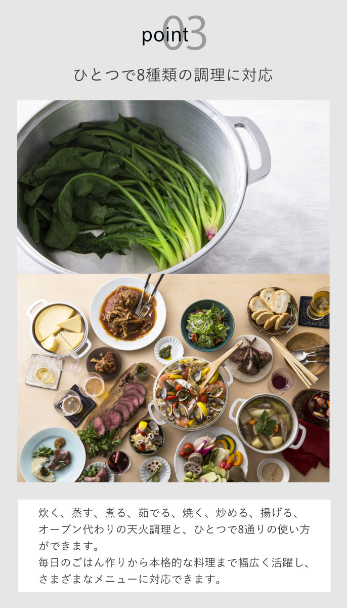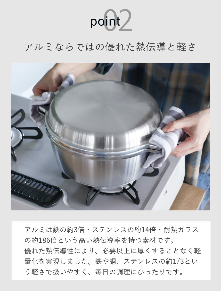 | 注意事項 | ※蓋を浅鍋として使用する場合、 直火でのみ使用可能です。 ※商品ページ内には別の商品を含む画像を使用しています。 |