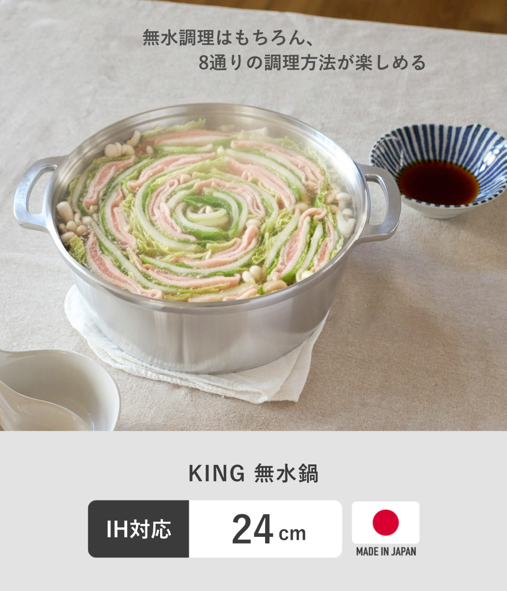 KING無水鍋24 24cm IH対応 日本製 ( ガス火対応 無水鍋 両手鍋 調理鍋 鍋 オーブン対応 アルミ鍋 無水調理 無加水調理 無水調理鍋 なべ オーブン調理 レシピ付き オール熱源対応 )