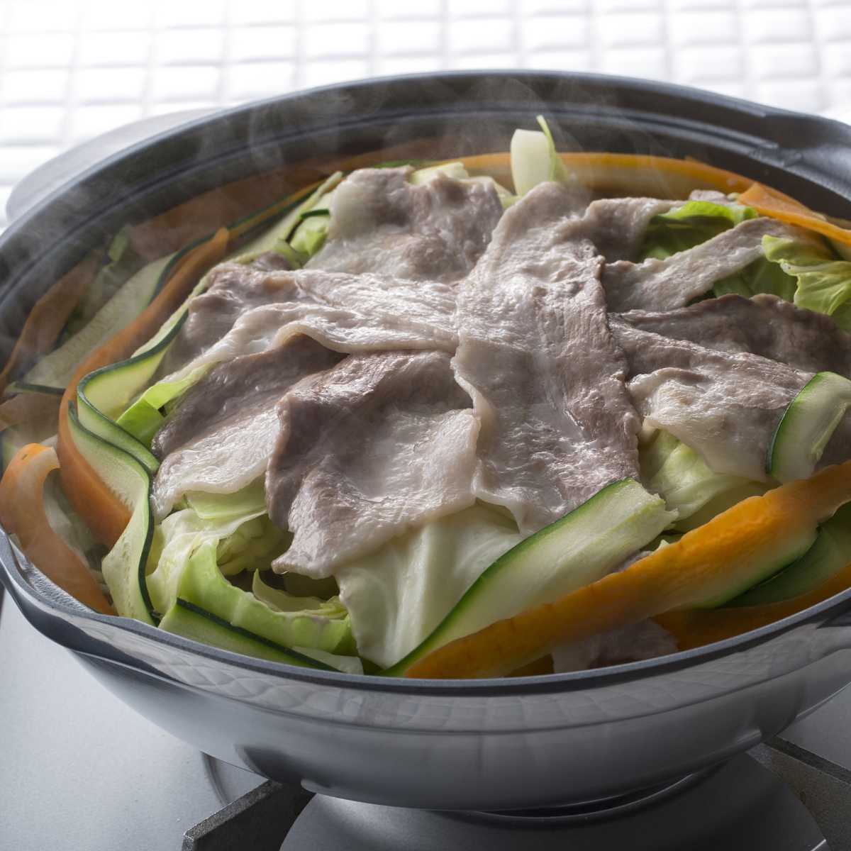 無水調理は余分な水を加えず、素材の水分で調理をします。旨みや栄養分がぎゅっとつまった素材本来の美味しさが味わえます。少量の調味料と短い時間で調理できるので、食費やガス・電気代の節約にもつながります。
