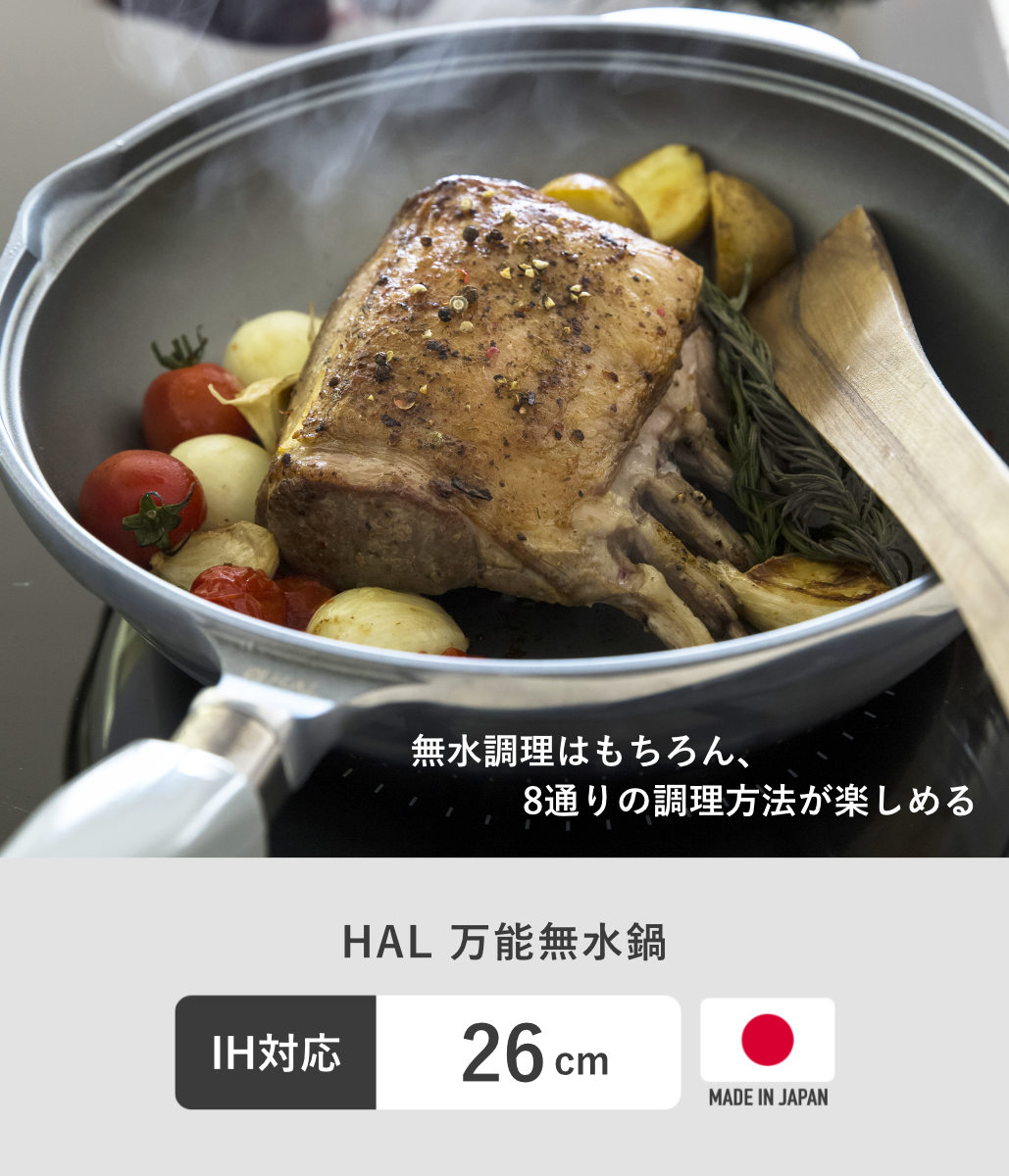 HAL万能無水鍋26 26cm IH対応 日本製 ( ガス火対応 無水鍋 片手鍋 調理鍋 鍋 蓋 アルミ鍋 無水調理 無加水調理 無水調理鍋 なべ オーブン調理 レシピ付き オール熱源対応 )