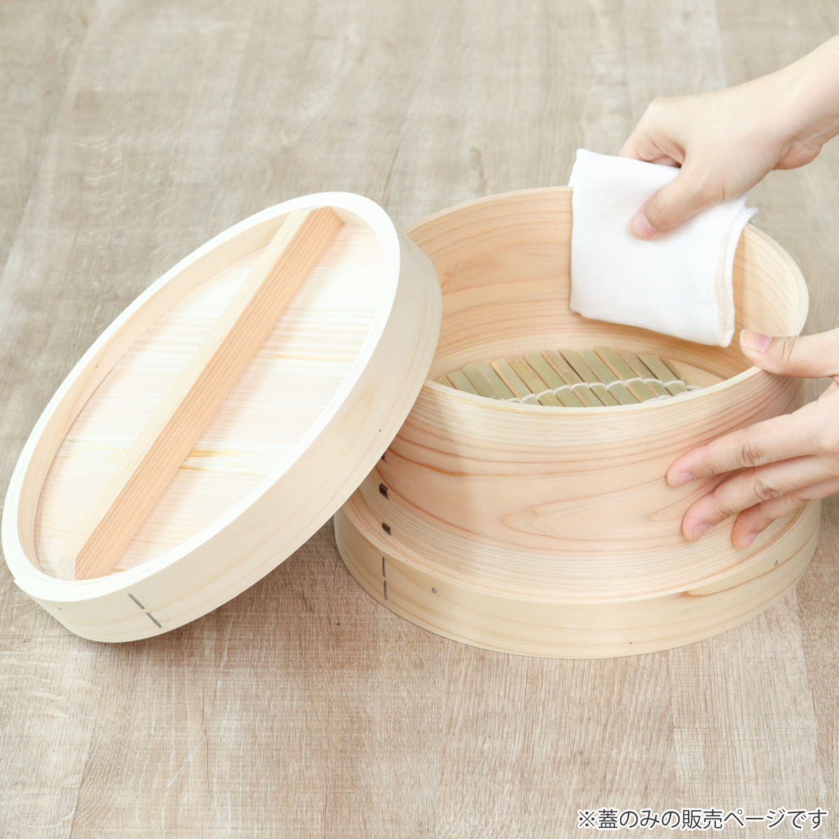 和せいろ【24cm】の蓋です。木の保温性と調湿性により、蒸気がやわらかく全体に広がるため、ムラなくふっくらと蒸し上がります。