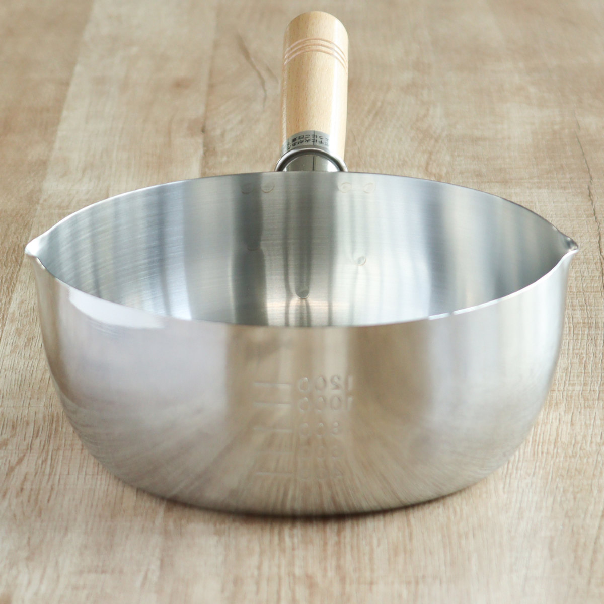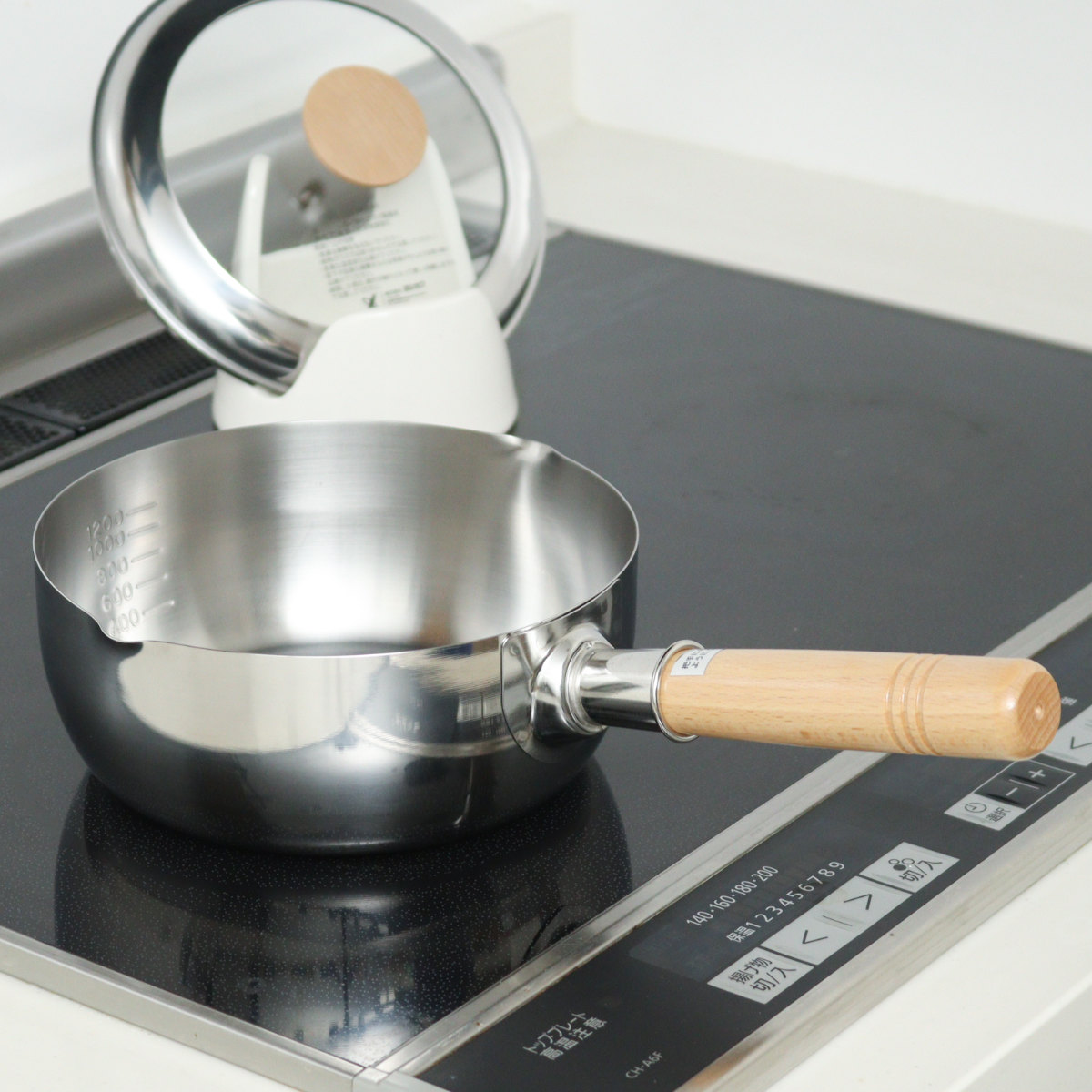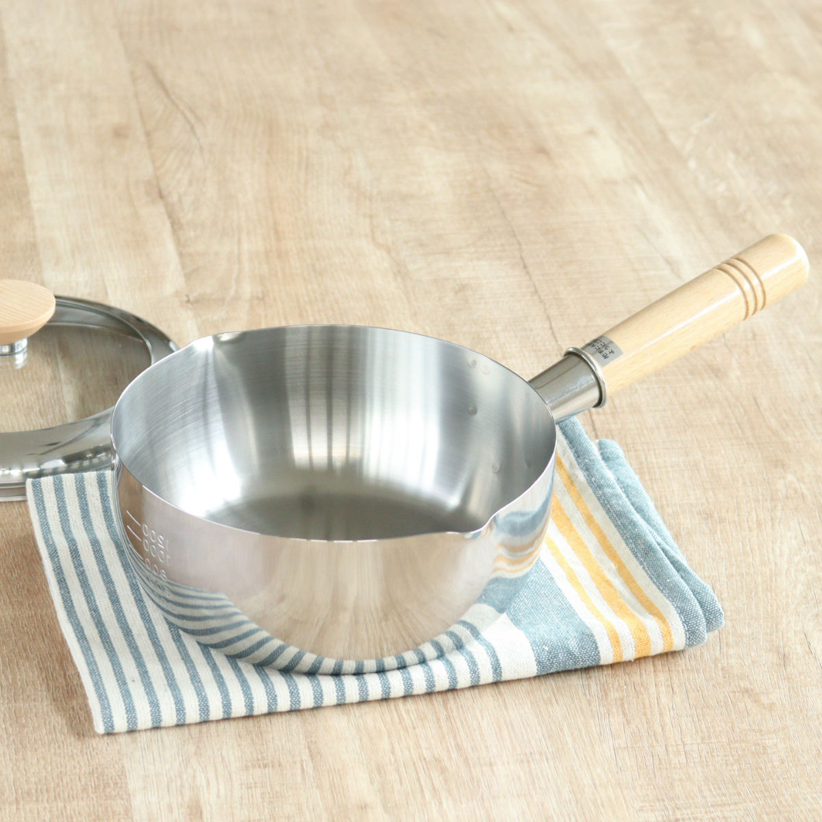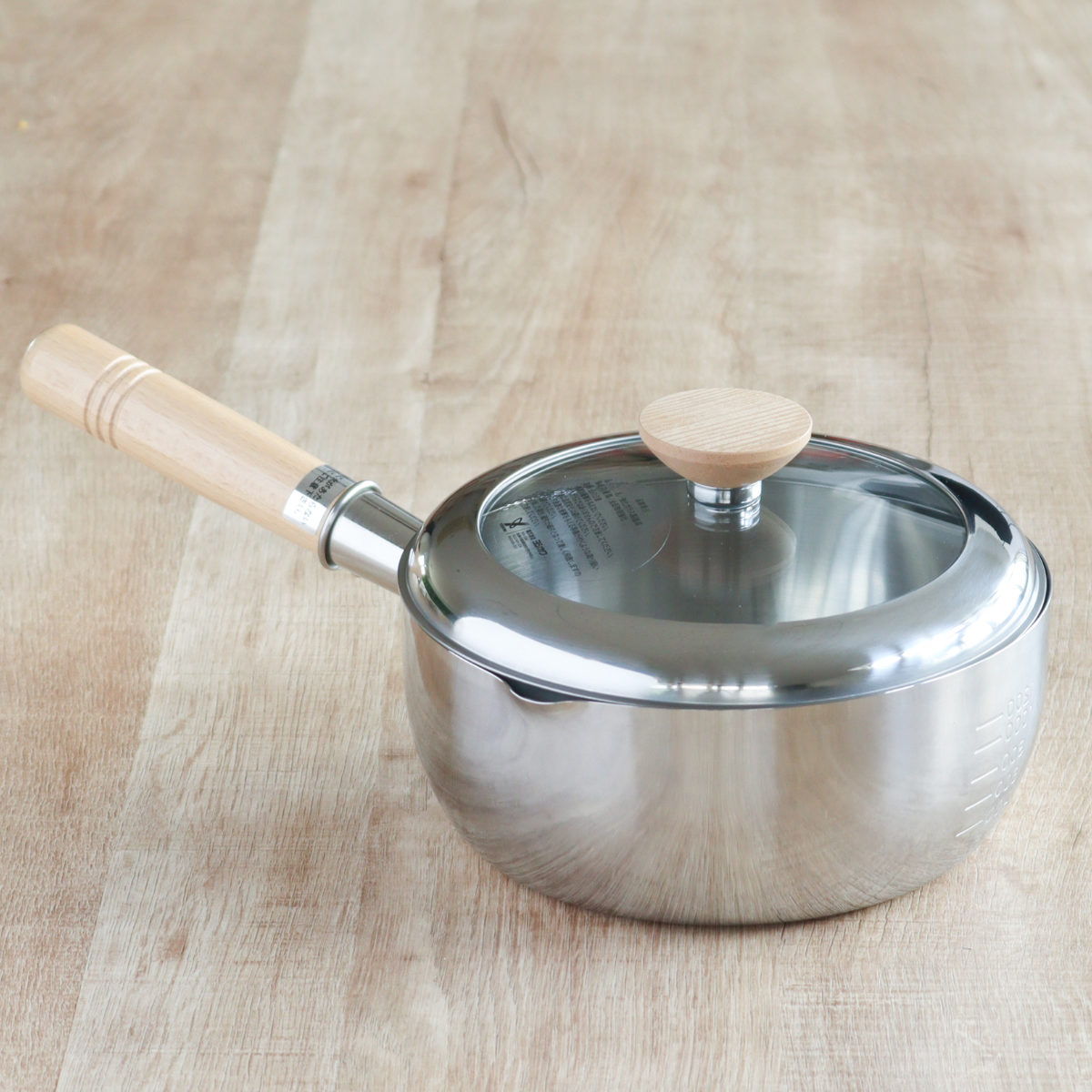 片手鍋 20cm IH対応 ソースパン 見える!木柄ソースパン ( ガス火対応 オール熱源対応 雪平鍋 行平鍋 ガラス蓋付き 燕三条 20センチ 注ぎ口付き ゆきひら鍋 なべ お鍋 木柄 ステンレス製雪平鍋 両口鍋 目盛り付き 調理器具 )