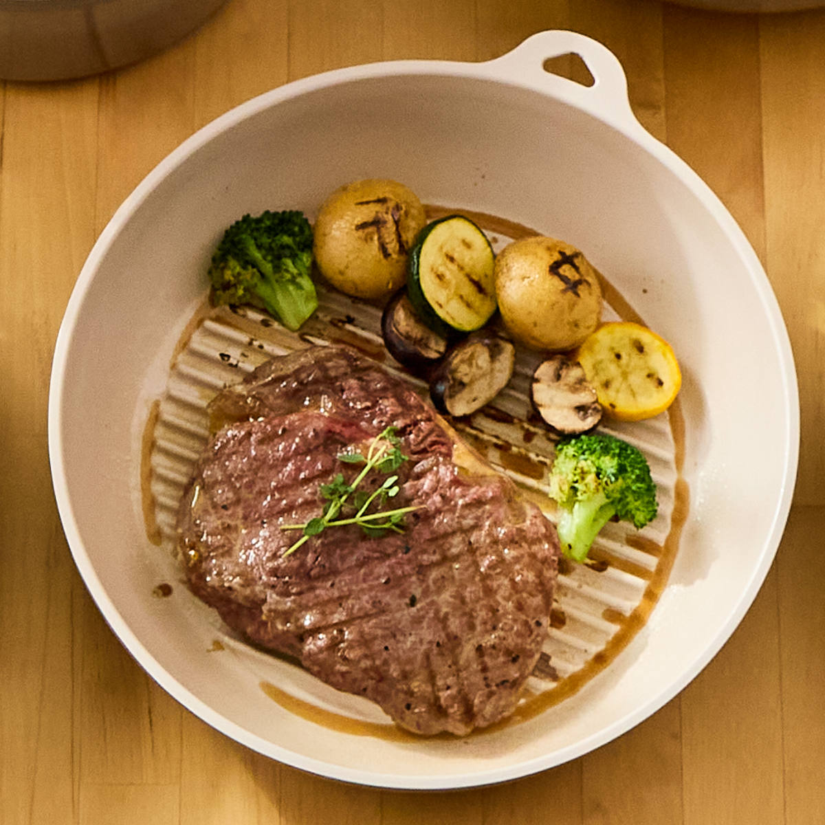 調理後は、できたてアツアツのまま食卓へ並べられます。お皿に移し替える手間がなく、洗い物を減らせます。食卓になじむシンプルなデザインと、上品なカラーも魅力です。