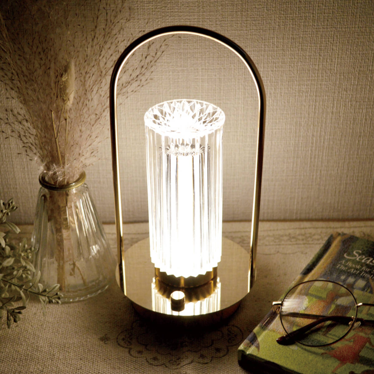 テーブルライト ガラス製 無段階調光 充電式 クラルテ ライン LEDランタン ( 間接照明 卓上 テーブルランプ 卓上ライト タッチセンサー LED インテリア 高級感 寝室 リビング 読書灯 授乳灯 常夜灯 おしゃれ )