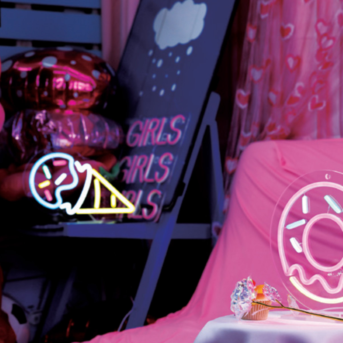 ネオニーサインライトの「アイスクリーム」デザインです。ビビッドでカラフルな発色がインテリアを可愛らしく彩ります。