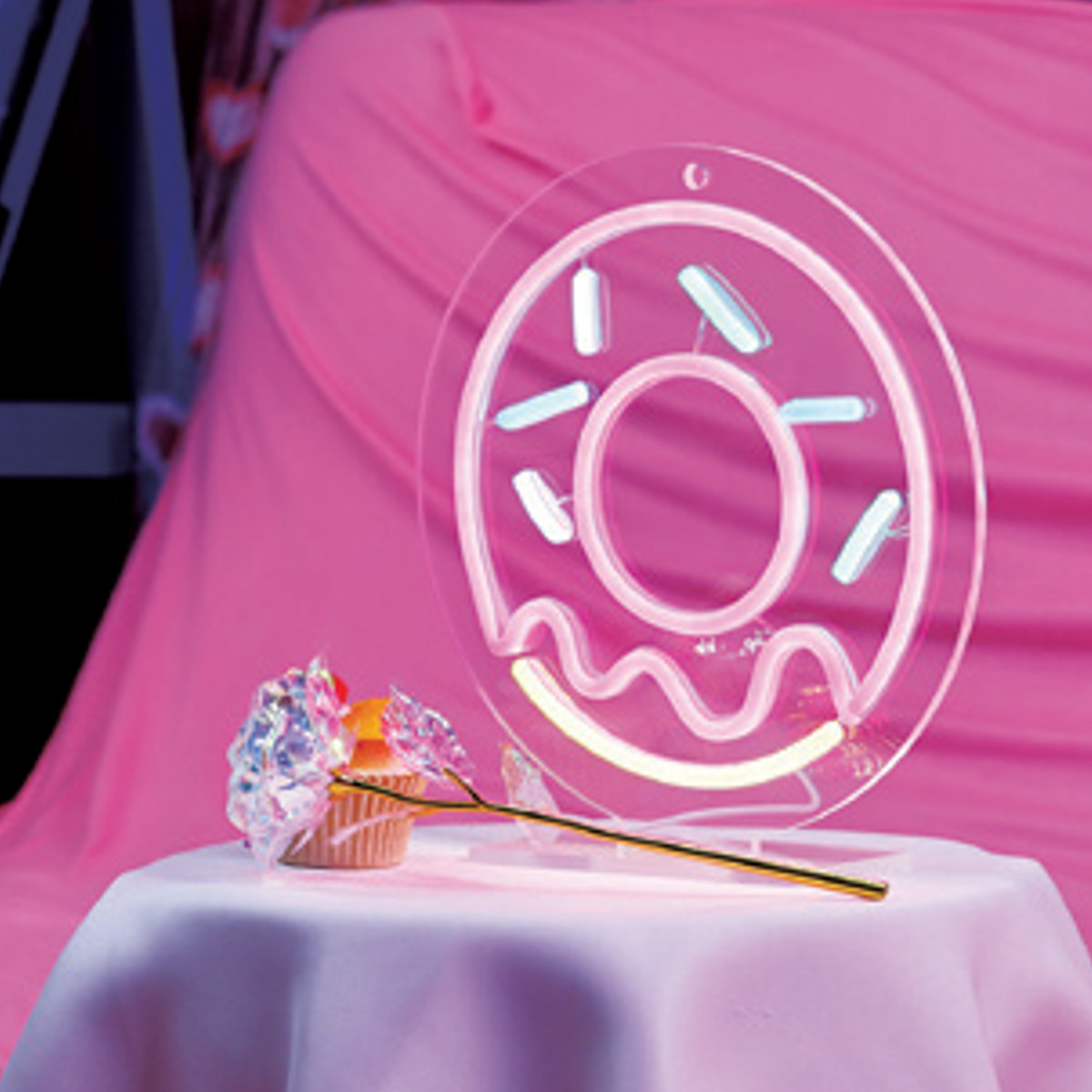 ネオニーサインライトの「ドーナツ」デザインです。ビビッドでカラフルな発色がインテリアを可愛らしく彩ります。