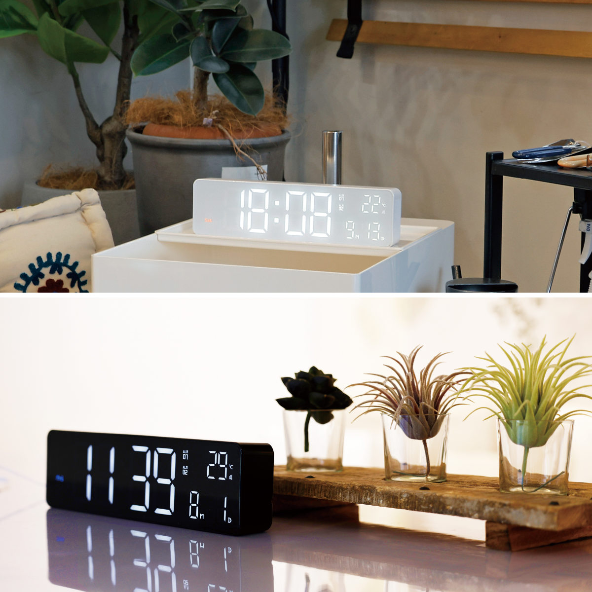 無駄のないシンプルでスマートなデザインは、ナチュラルからモダンまであらゆるインテリアに調和します。時計としての機能はもちろんのこと、デスクや棚に置くだけで空間をすっきりと引き立て、インテリアとしても活躍します。