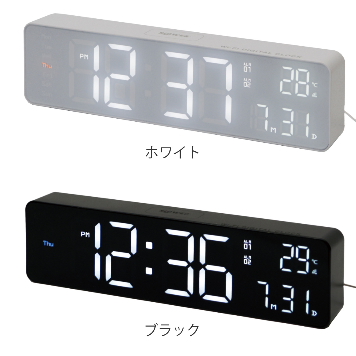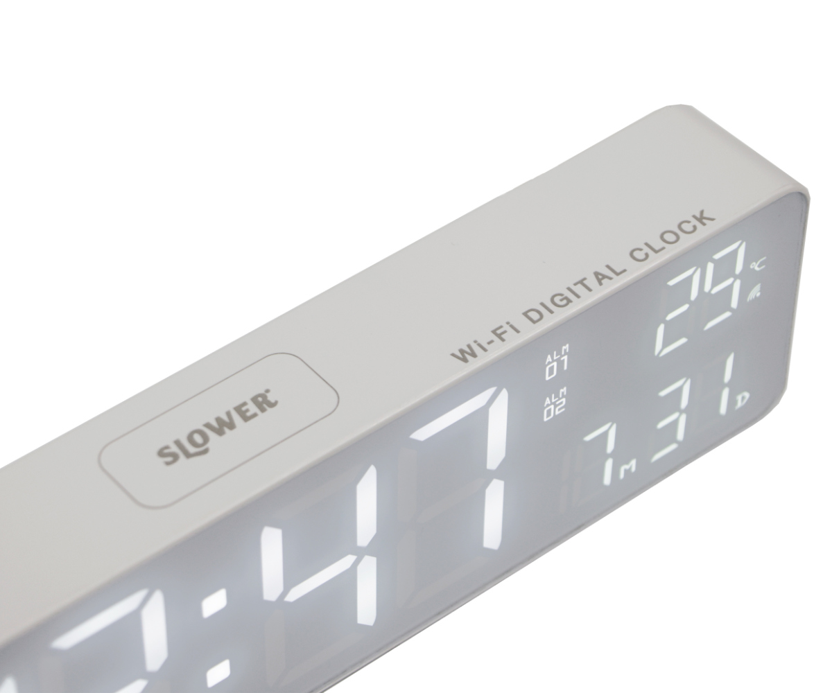 置き時計 LED Wi-Fi カレンダー機能付き 置き掛け兼用 SLOWER ブエノ ( 温度計 カレンダー USB LED時計 置き 掛け アラーム スヌーズ 輝度調節 自動調整 卓上時計 時計 とけい クロック 日付 曜日 温度 コンパクト おしゃれ ) 【ホワイト】