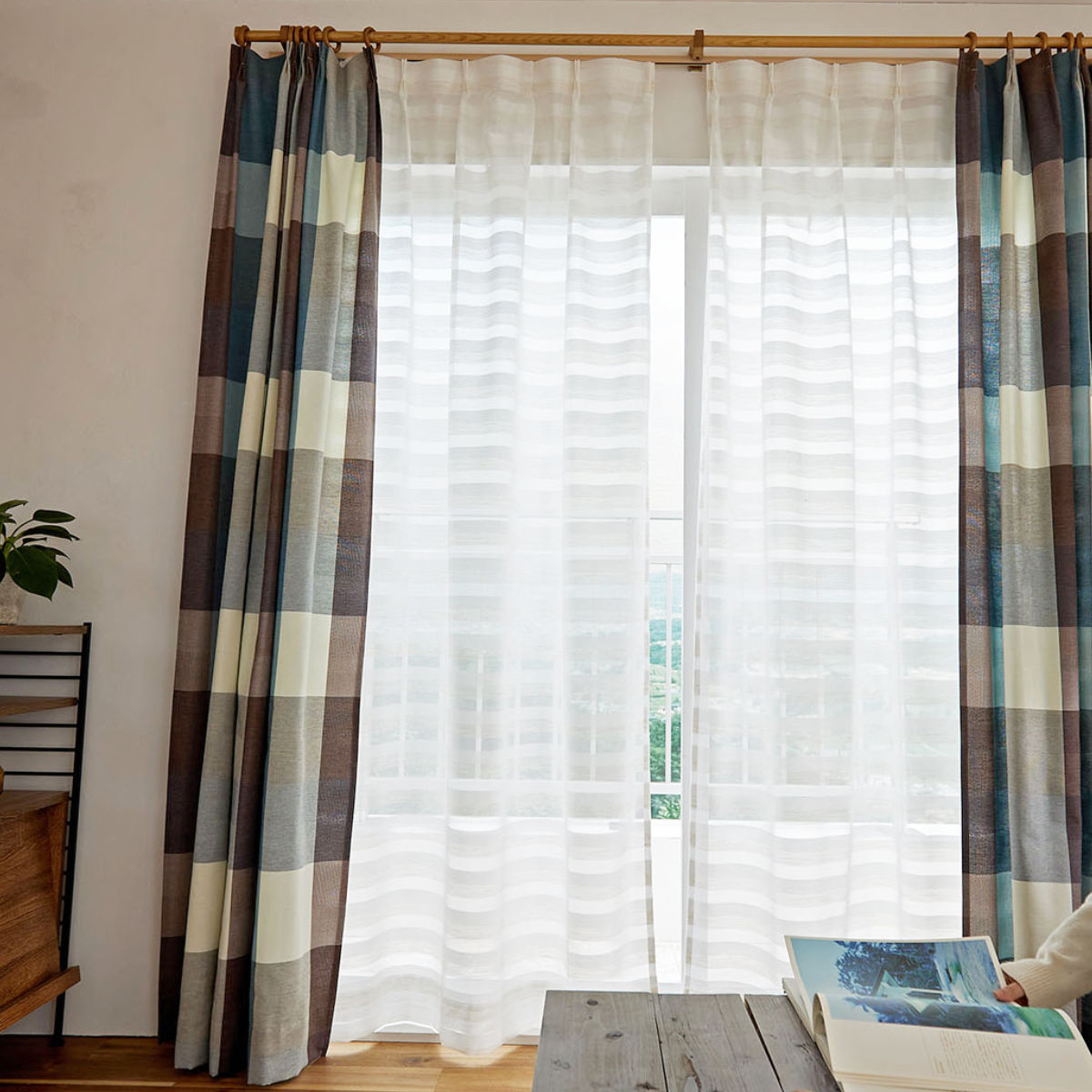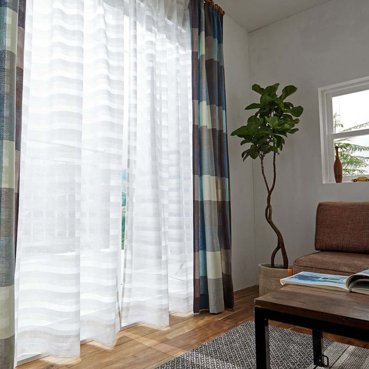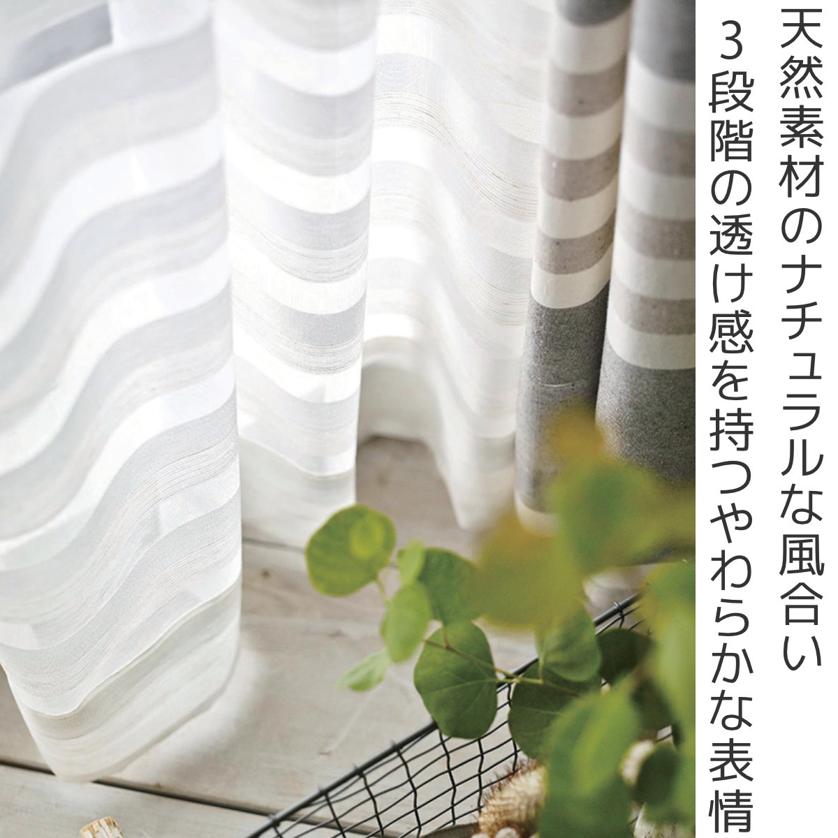 糸と織りで3種類の透け感を表現した太めボーダーが、ふんわり優しい雰囲気に仕上げた、レースカーテンです。