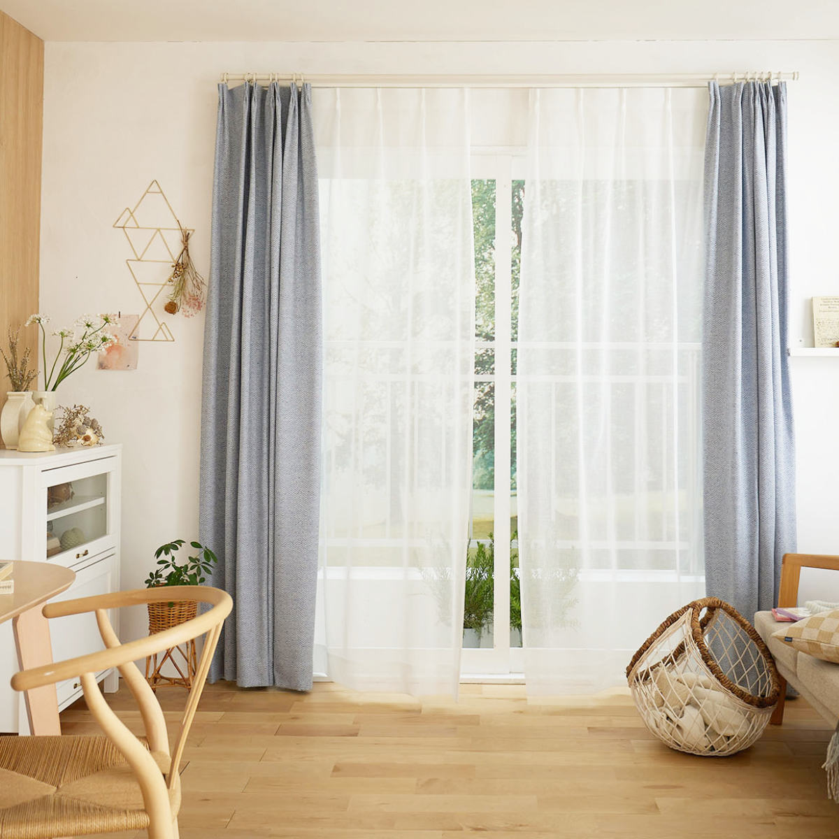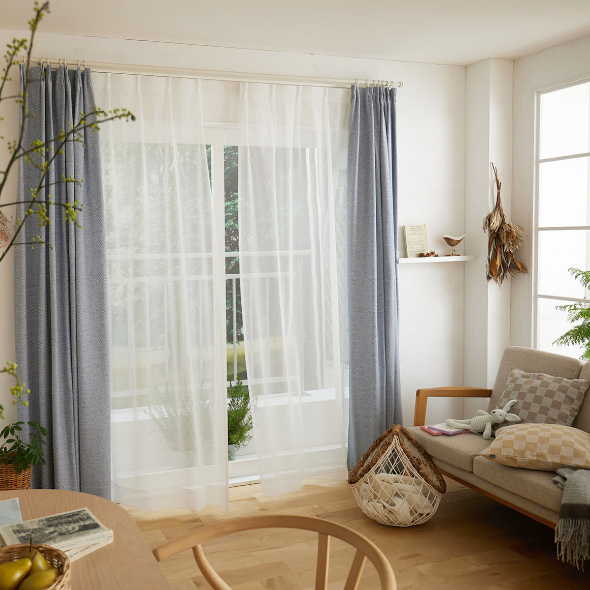 ナチュラルな風合いとやさしい透け感を持つ、薄地のレースカーテンです。自然をまとったような、ふんわりと優しいシンプルな美しさはどんなドレープカーテンとも相性がよく、お部屋の雰囲気にもすぐに馴染みます。