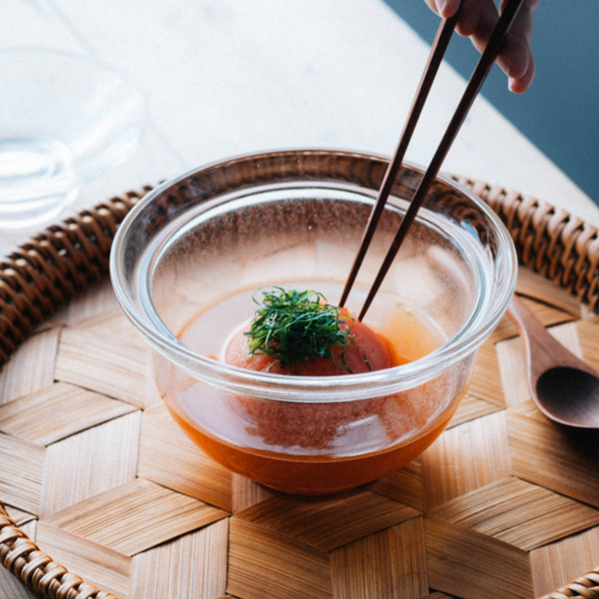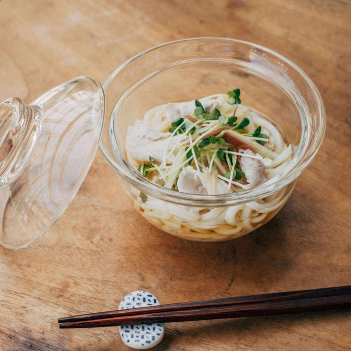 季節の手仕事を大切にし、ひと手間を加えることで日々の暮らしに彩りを添える「ガラスのある生活」シリーズのフタ付き丼鉢。透明でシンプルな美しさと機能性を兼ね備えたデザインです。夏はそうめんを涼しげに、冬は親子丼や海鮮丼を色鮮やかに演出。ガラス越しに見える料理が、食卓をいっそう華やかにしてくれます。