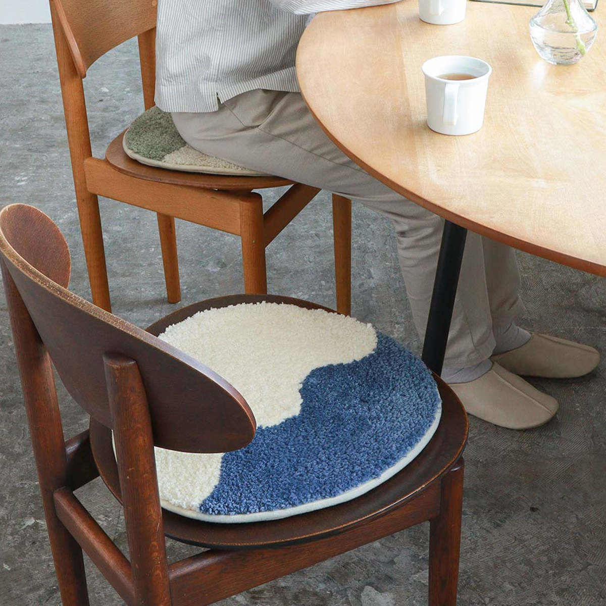 タフト製法で丁寧に仕上げたチェアパッドは、表面がモコモコで柔らかく、座るたびに心地よい弾力を感じられます。優しい雰囲気でお部屋にナチュラルに馴染みます。