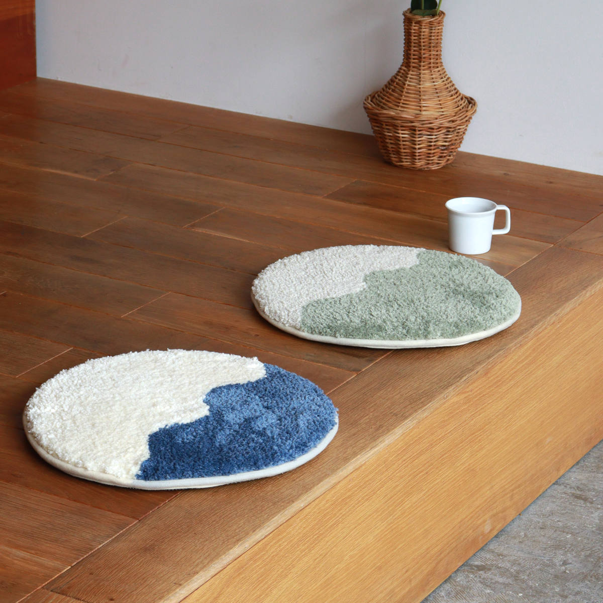 チェアパッド キャンパスタフトチェアパッドウェーブ 洗える ( 丸 低反発 洗濯可 マット 滑り止め付き 座布団 かわいい 35cm 丸洗いOK シートクッション円形 ラグ 椅子用 チェア ダイニングチェア インテリア パッド おしゃれ ) 【ブルー】