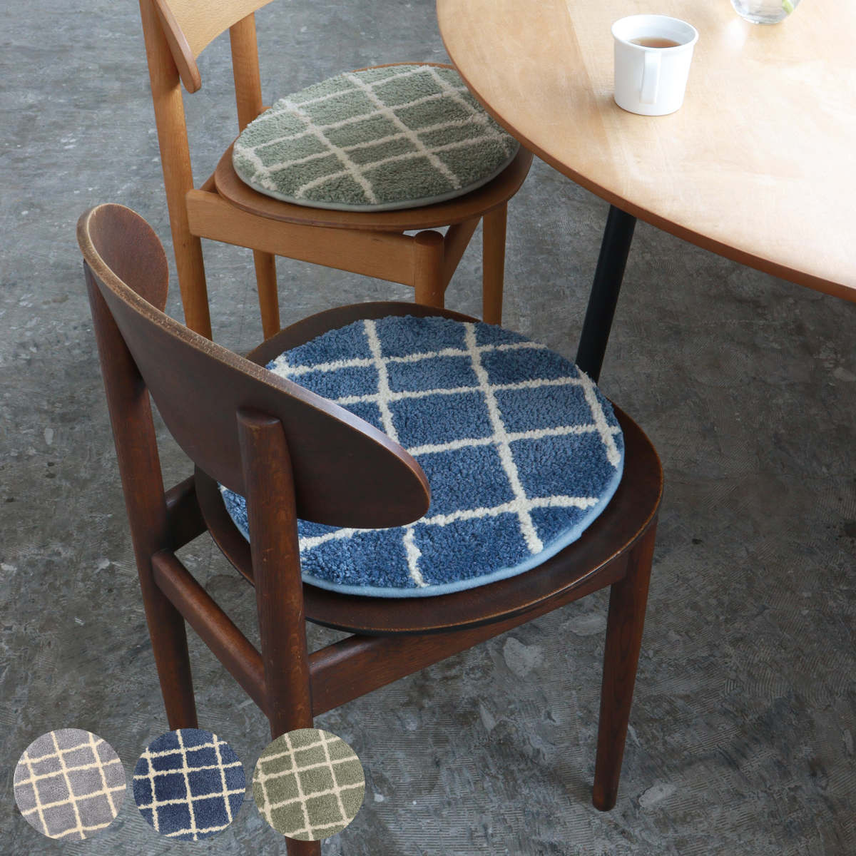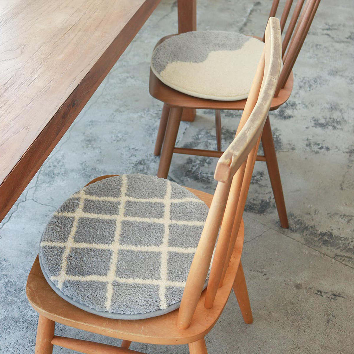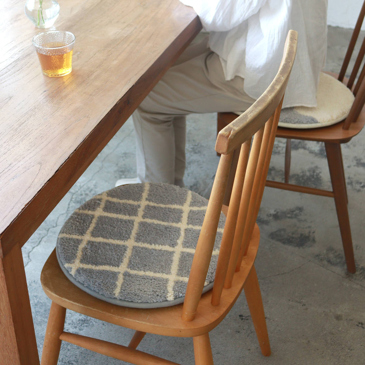 チェアパッド キャンパスタフトチェアパッドチェック 洗える ( 丸 低反発 洗濯可 マット 滑り止め付き 座布団 かわいい 35cm 丸洗いOK シートクッション円形 ラグ 椅子用 チェア ダイニングチェア インテリア パッド おしゃれ ) 【グレー】