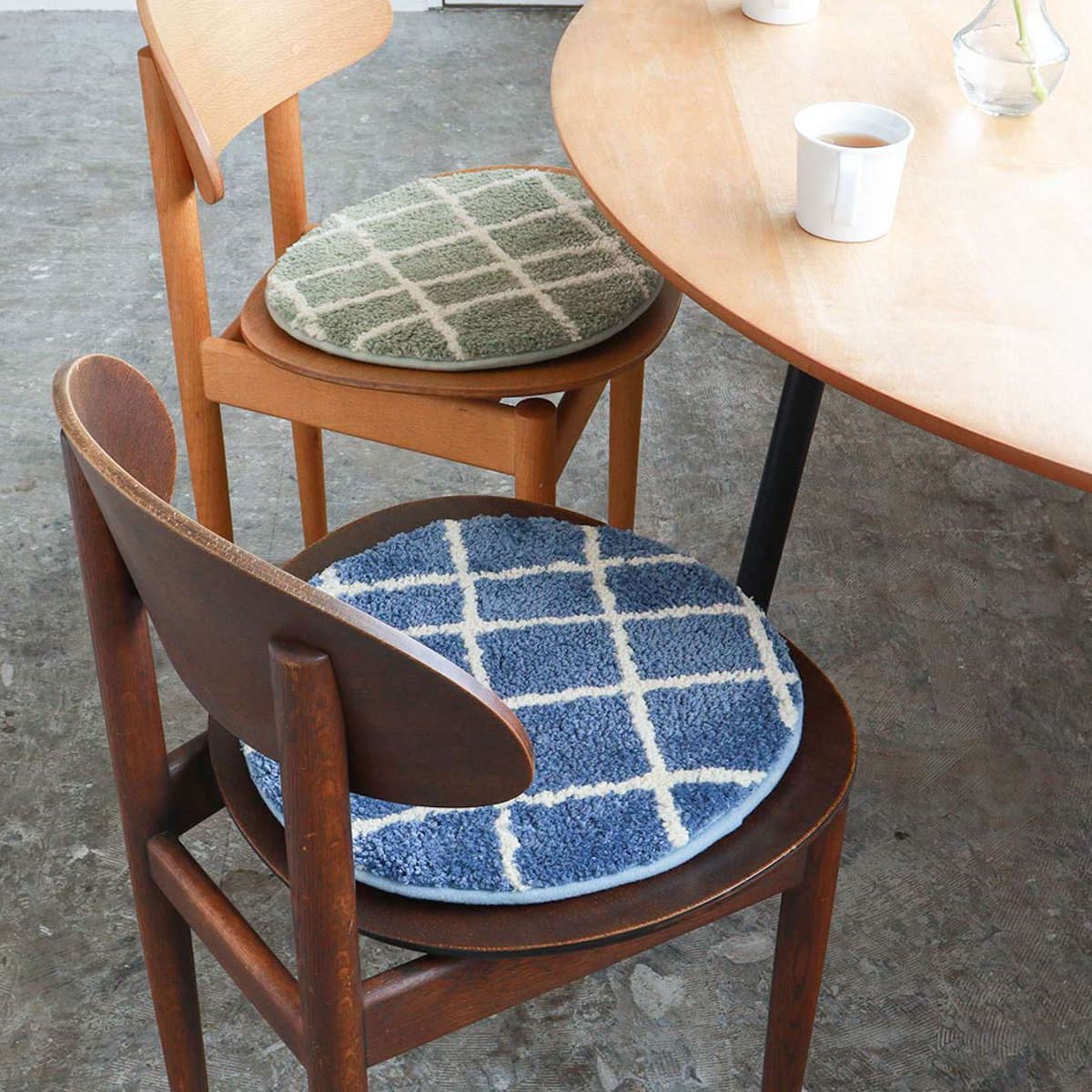 タフト製法で丁寧に仕上げたチェアパッドは、表面がモコモコで柔らかく、座るたびに心地よい弾力を感じられます。優しい雰囲気でお部屋にナチュラルに馴染みます。