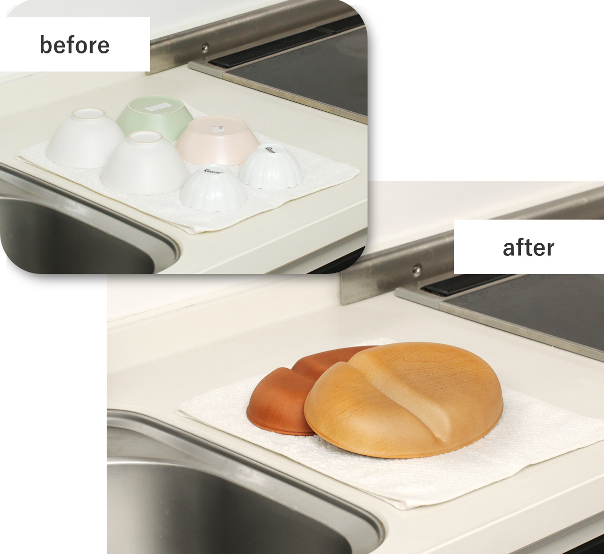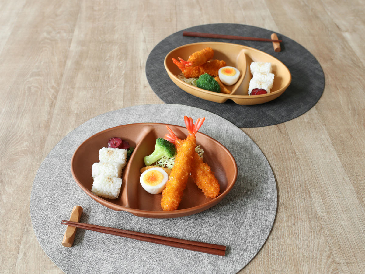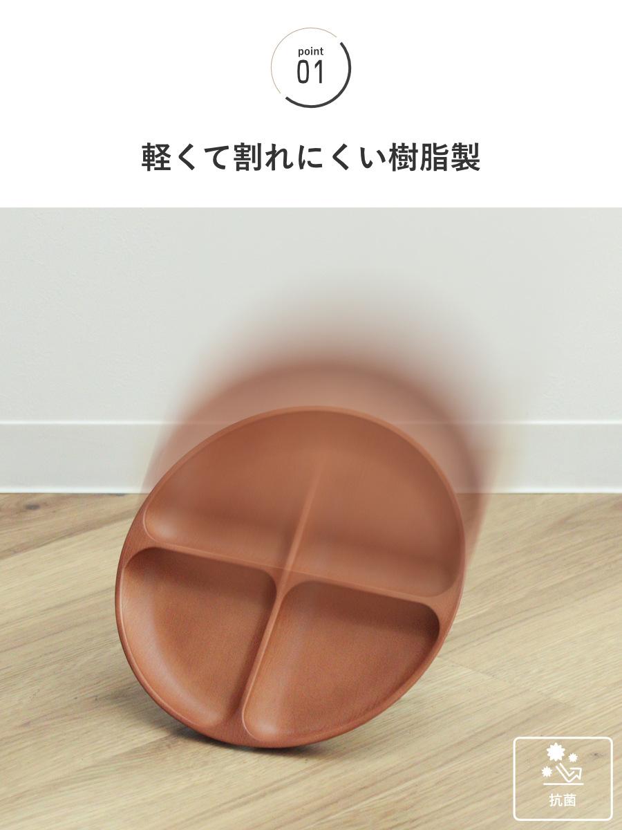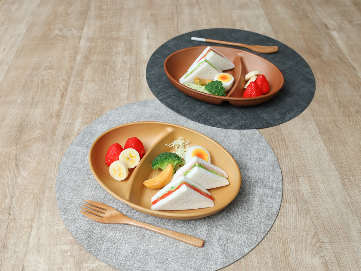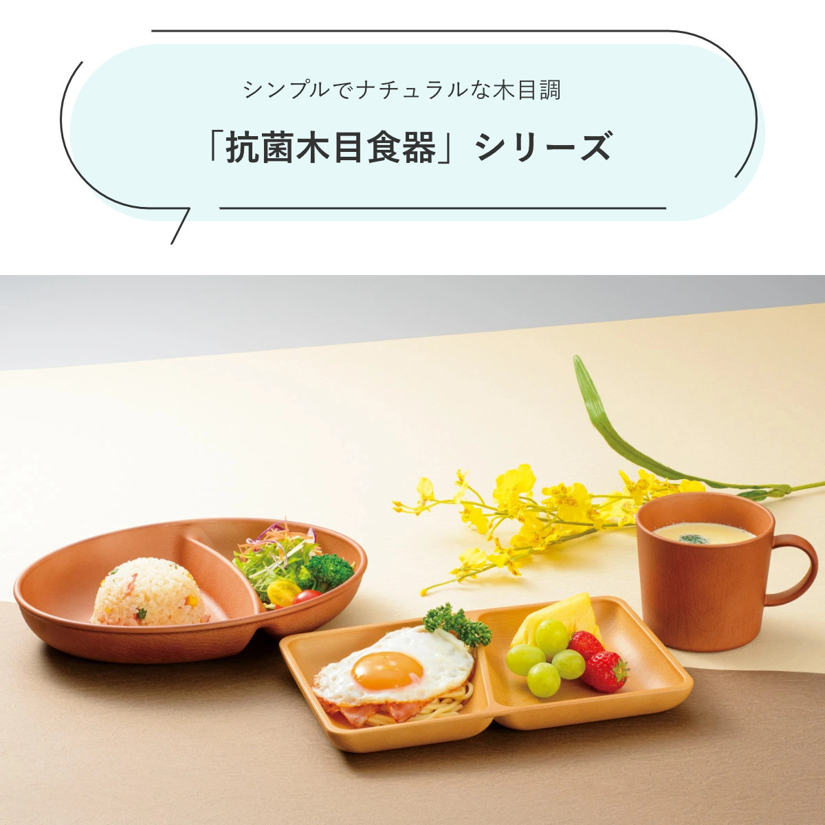 ナチュラルでやわらかな木目調のデザインに、安心してお使いいただける抗菌加工を施しています。オーバル型やスクエア型、仕切り付きなど豊富なラインナップが揃い、用途に合わせてお選びいただけます。