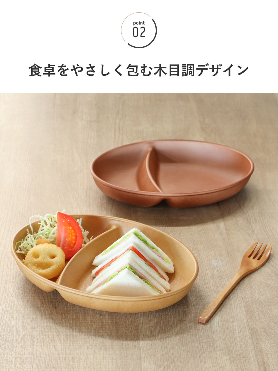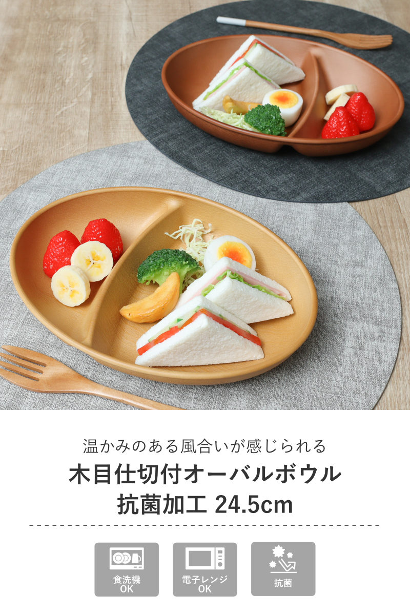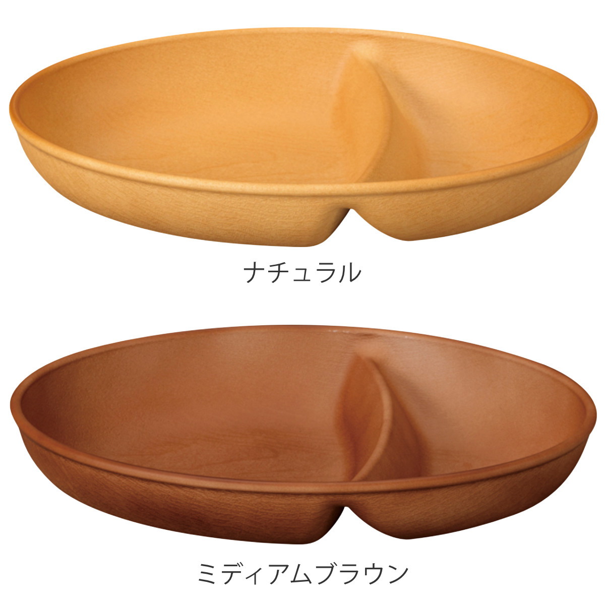 ランチプレート 木目仕切付オーバルボウル 抗菌加工 ( 電子レンジ対応 食洗機対応 日本製 樹脂製 仕切り皿 ボウル プレート 皿 お皿 食器 おしゃれ ナチュラル 木目調 シンプル かわいい 北欧 北欧風 ) 【ミディアムブラウン】