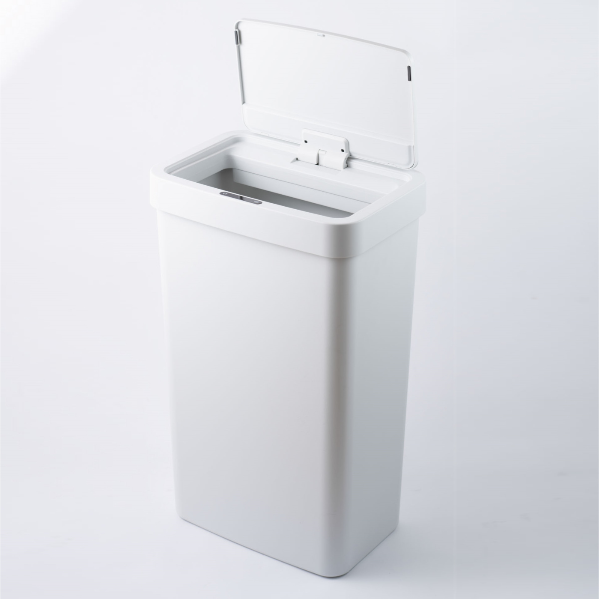 直接触れなくてもセンサーでふたが自動開閉するゴミ箱です。高精度赤外線センサーによるハンズフリー操作で、スムーズで衛生的な開閉を実現します。ふたの開閉音は図書館内の静寂さと同レベルの40~50db以下です。寝ているお子様やペットを起こしたりしません。
