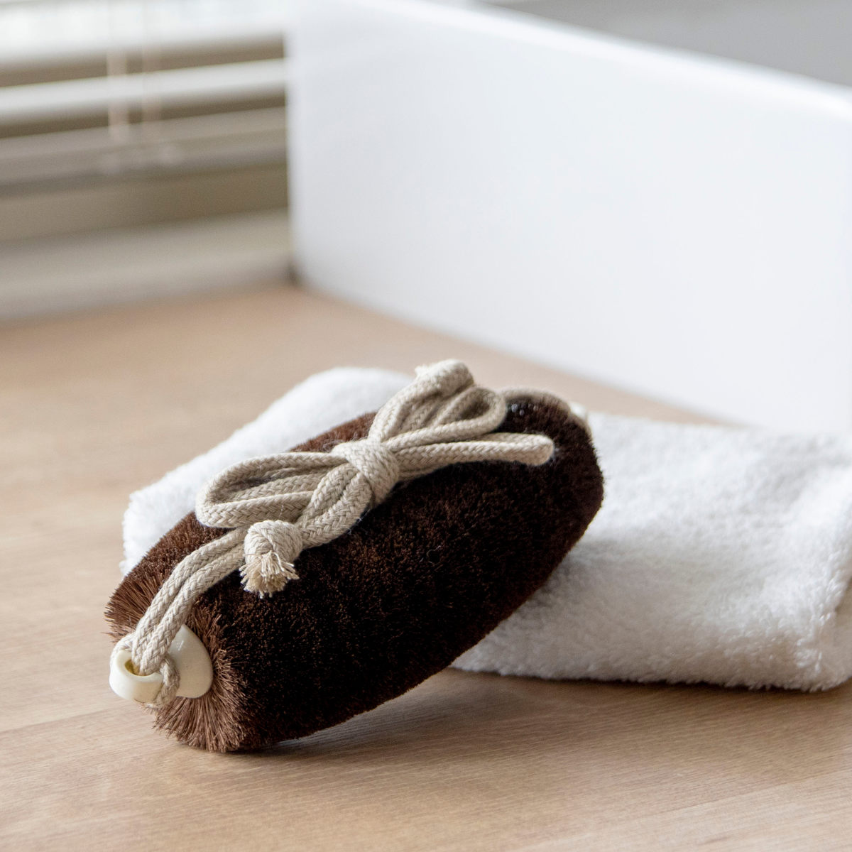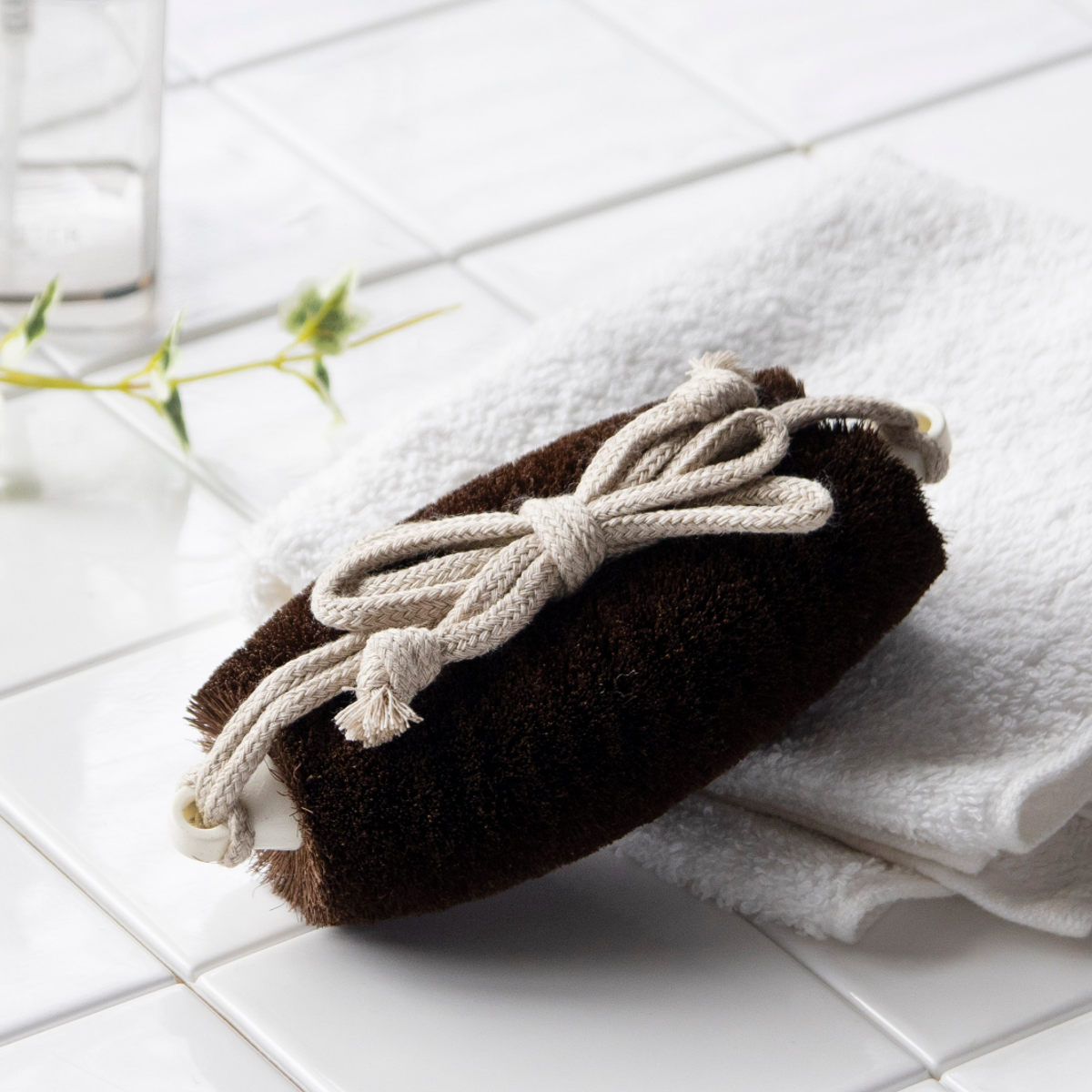 泡立てたボディソープや石鹸をたわしに付けて身体をこすって洗います。たわしの繊維がもたらす適度な刺激がボディケア効果を高めます。