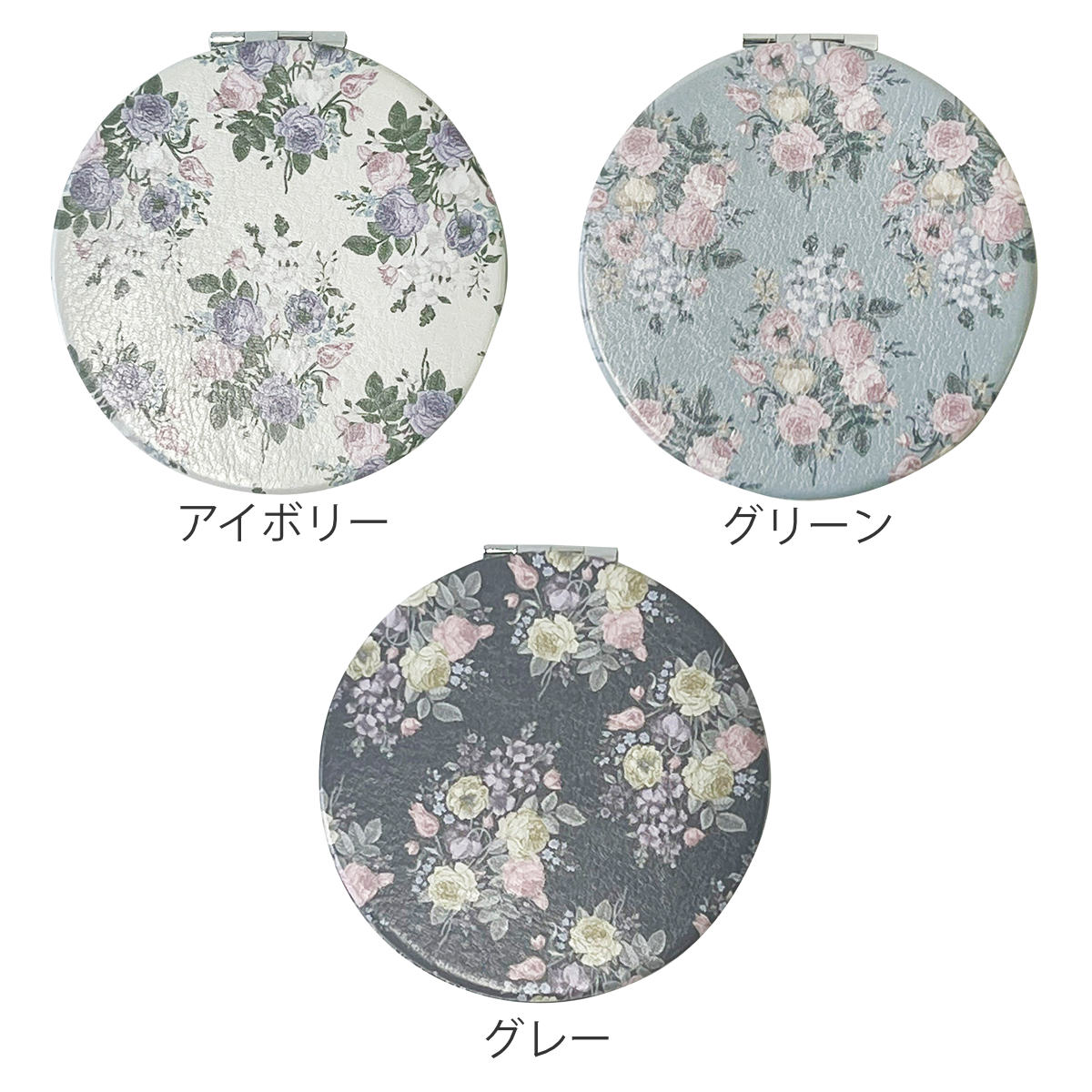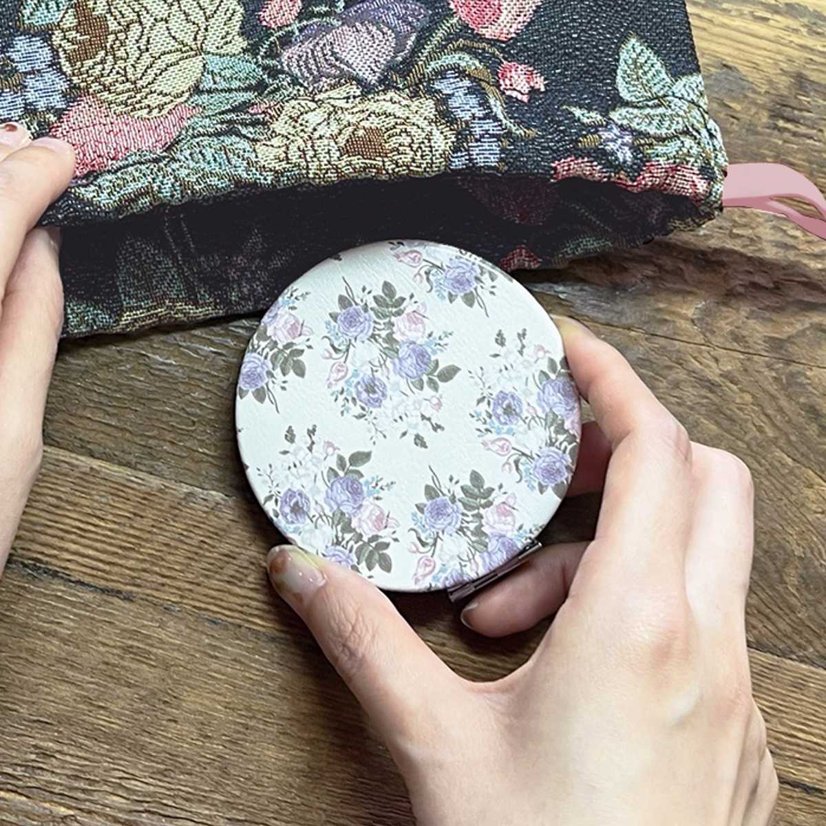 ミラー 折りたたみ コンパクト ジャガード織り 花柄 折りたたみミラー ( 手鏡 両面 拡大鏡付き 携帯用 小さい 鏡 ハンドミラー おしゃれ かわいい ダブルミラー 拡大鏡 コンパクトミラー 持ち運び ラウンド 丸 大人 レトロ ) 【アイボリー】