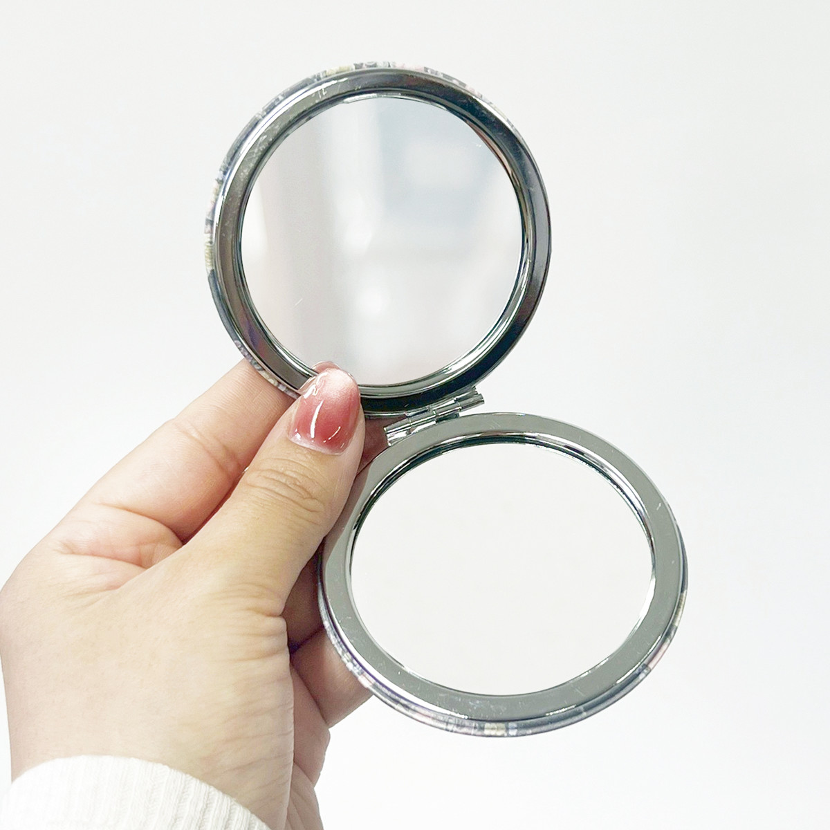 かさばりがちなメイクポーチにもすっきり収まる両面コンパクトミラーです。手のひらサイズで持ち運びやすく、お出かけや旅行の際にも便利です