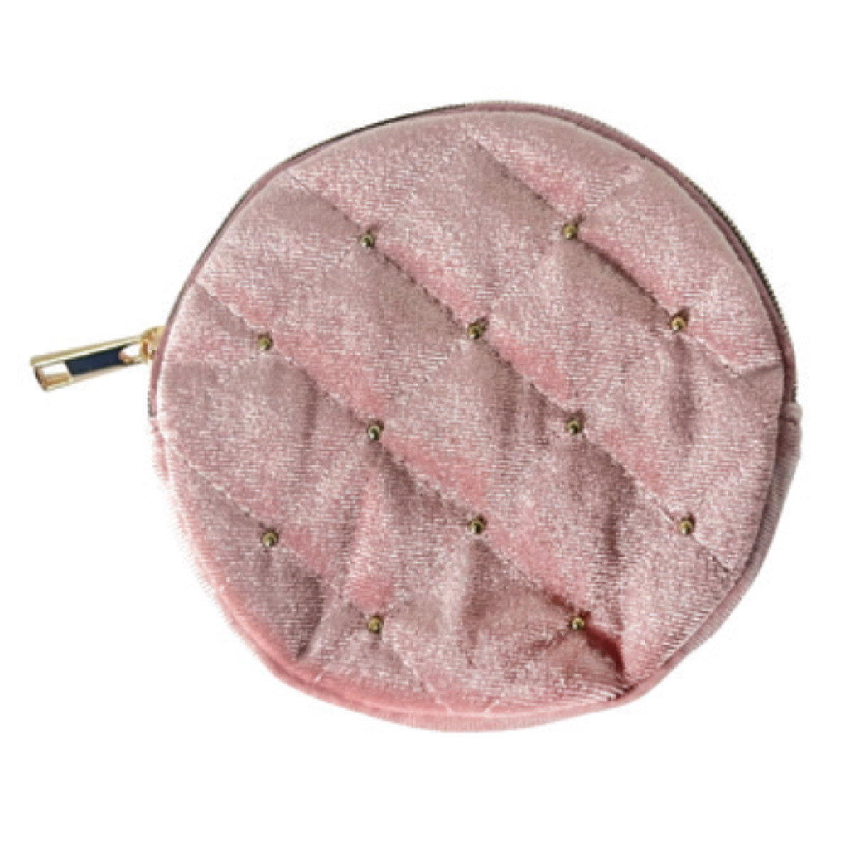 小物 収納 ベロア素材 丸型ポーチ ( ポーチ 丸 ラウンド 薄い スリム ミニポーチ 小物入れ コインケース 丸型 ベロア 小物収納 コインポーチ 薄型 コスメポーチ 化粧ポーチ 薬入れ シンプル かわいい 雑貨 プレゼント ) 【ピンク】