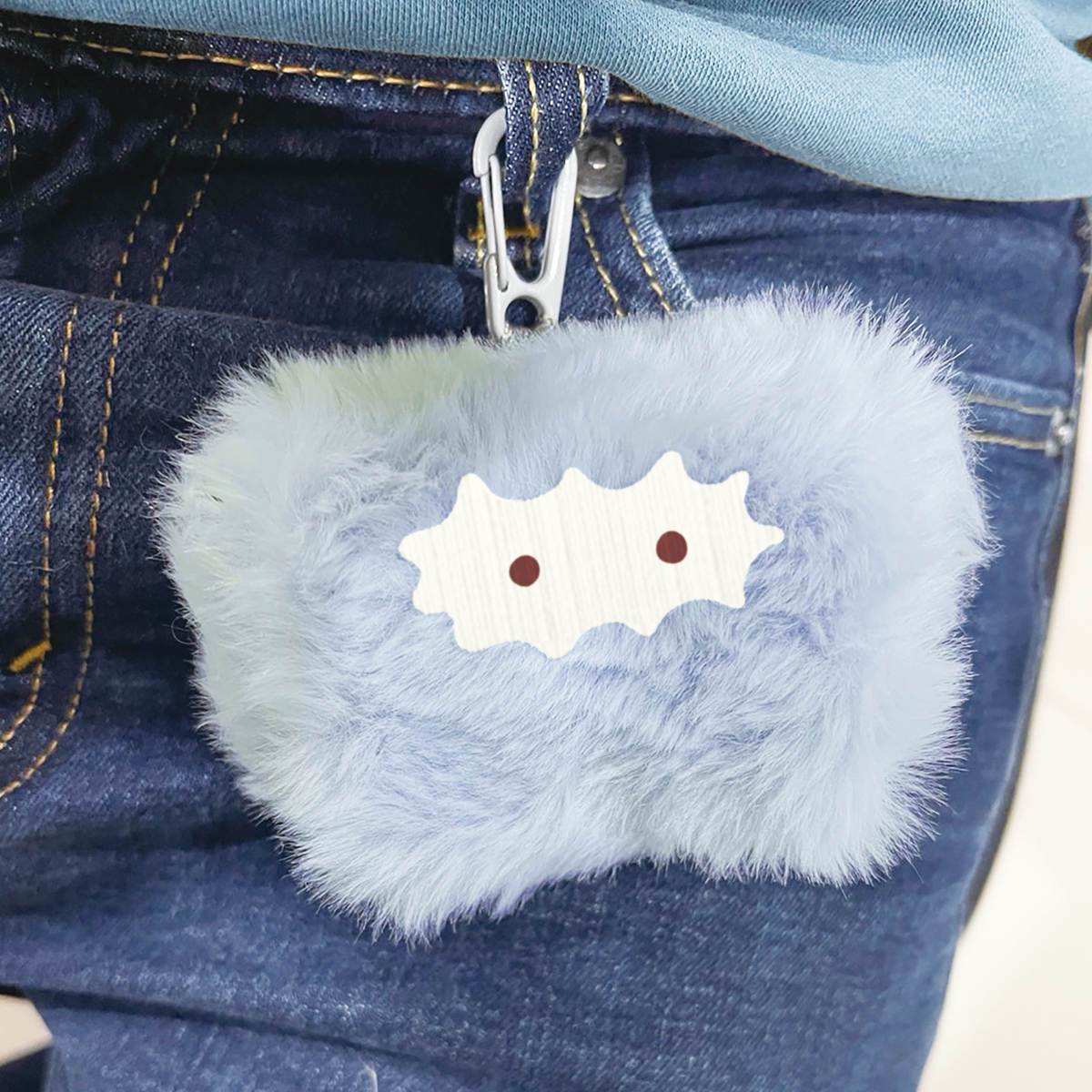 イヤフォンポーチ ファー ふわふわ ダンシング イエティ 充電穴付き ( イヤホンポーチ かわいい カラビナ付き UMA 可愛い 癒し イヤホン ポーチ ケース イヤホン入れ 持ち歩き 通勤 通学 バッグ リュック プレゼント )