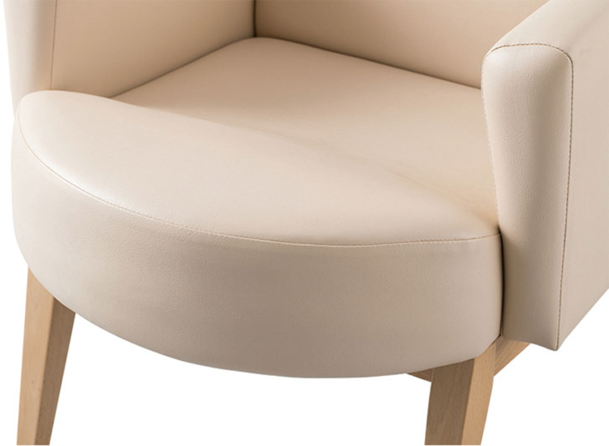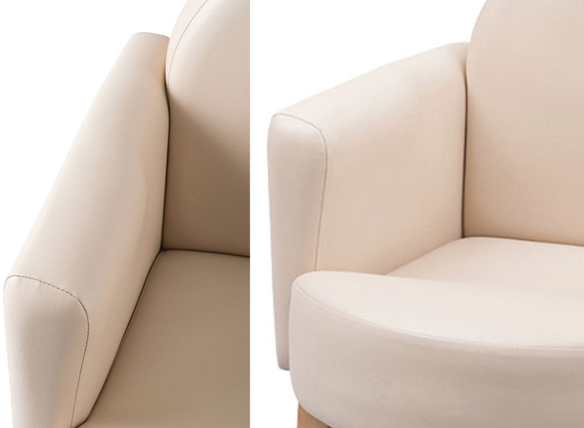 授乳スペースでの使用に特化したソファタイプの授乳専用チェアです。乳児の頭を支える腕をしっかり安定させるため、肘を乗せやすい形状や座面前部のふくらみなどを採用。専用設計ならではの工夫で、外出時の授乳負担をやさしくサポートします。