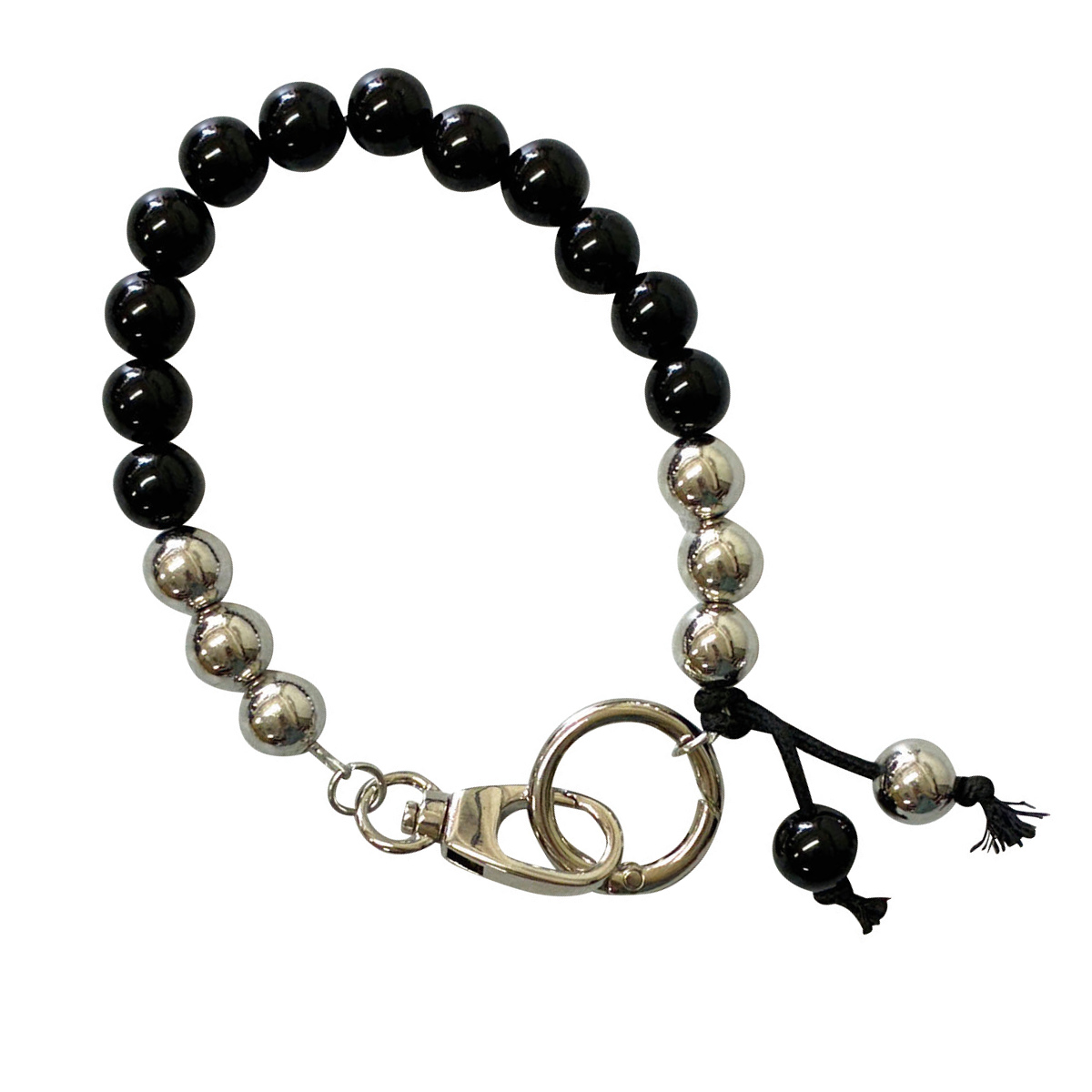 ビーズ ハンド ストラップ チャーム ブレスレット ( スマホストラップ 手首 紐 手 手元 落下防止 挟むだけ かわいい おしゃれ 旅行 持ち歩き レディース メンズ 紛失防止 ) 【ブラック】