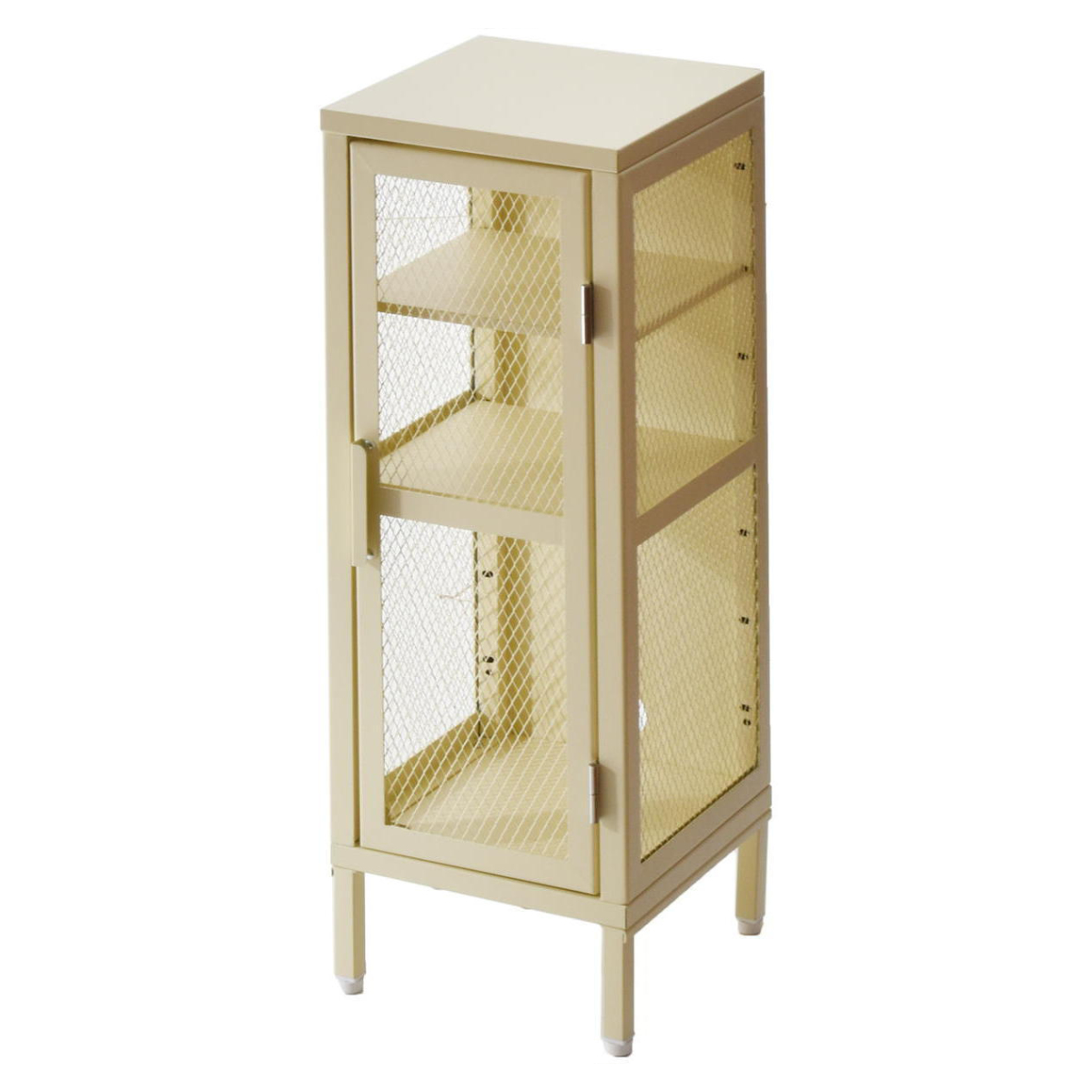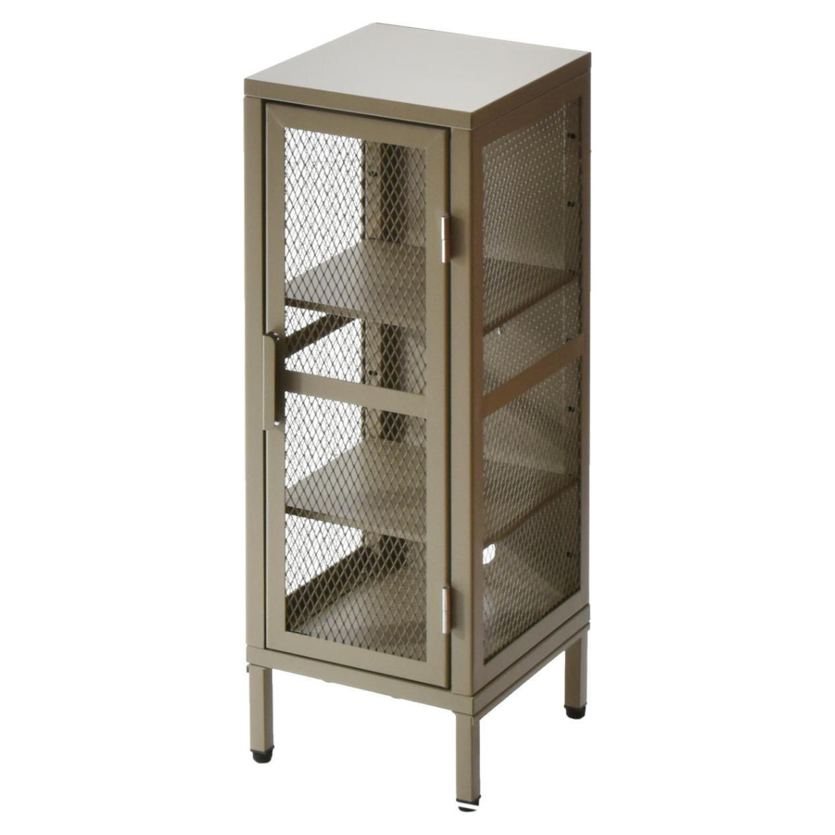 BURUCK スリムメッシュキャビネット 3段 ( キャビネット スチール 扉 片開き メッシュ 棚 幅28cm ラック 飾り棚 スリム ディスプレイ キッチン リビング シューズラック 小物収納 ブラック ホワイト カーキ ) 【ベージュ】