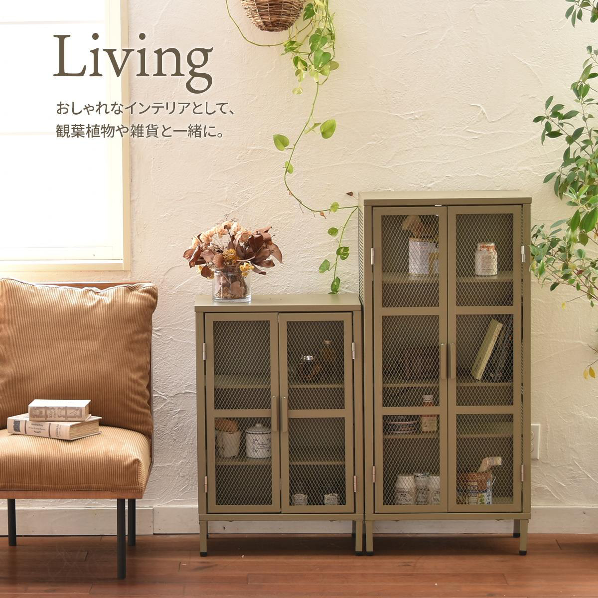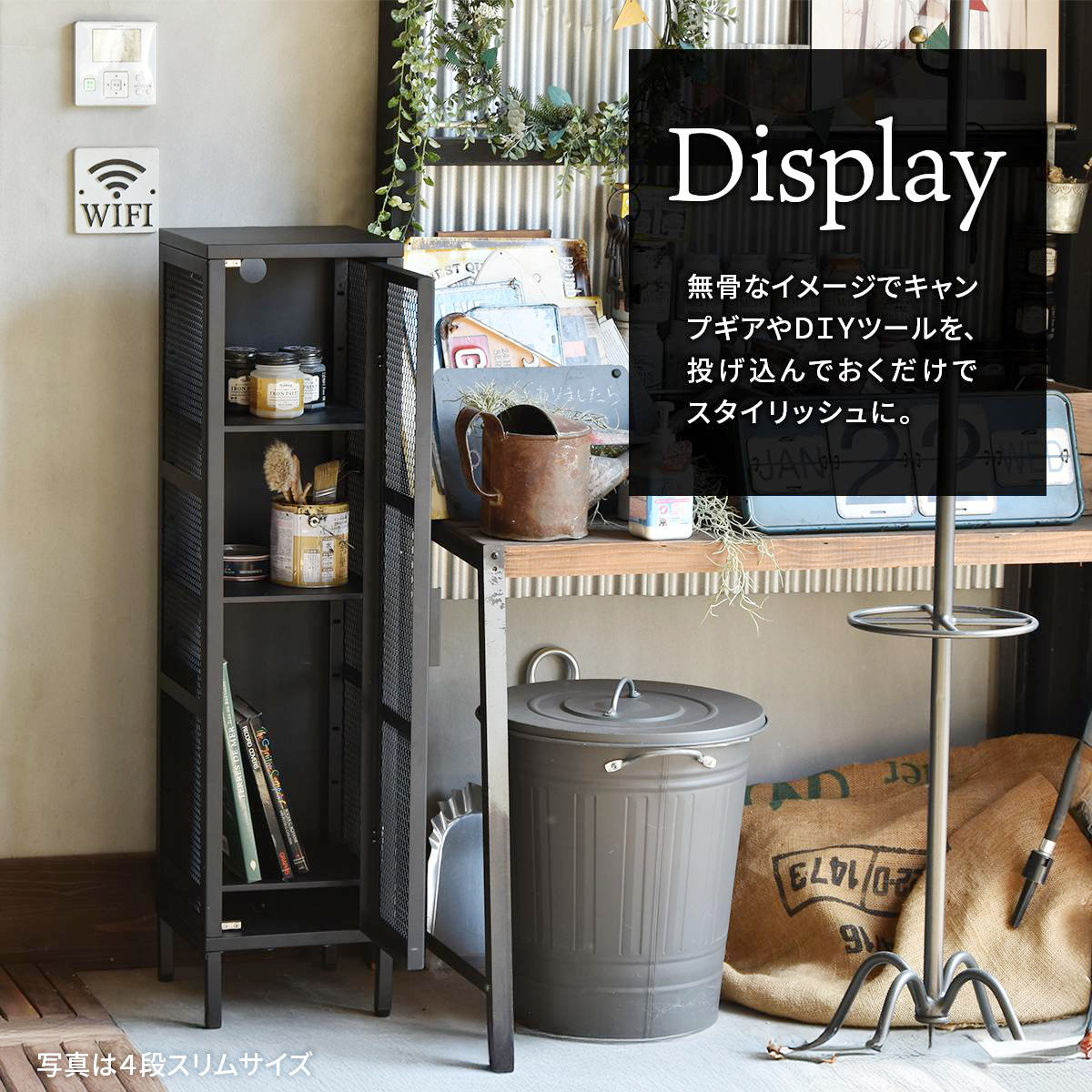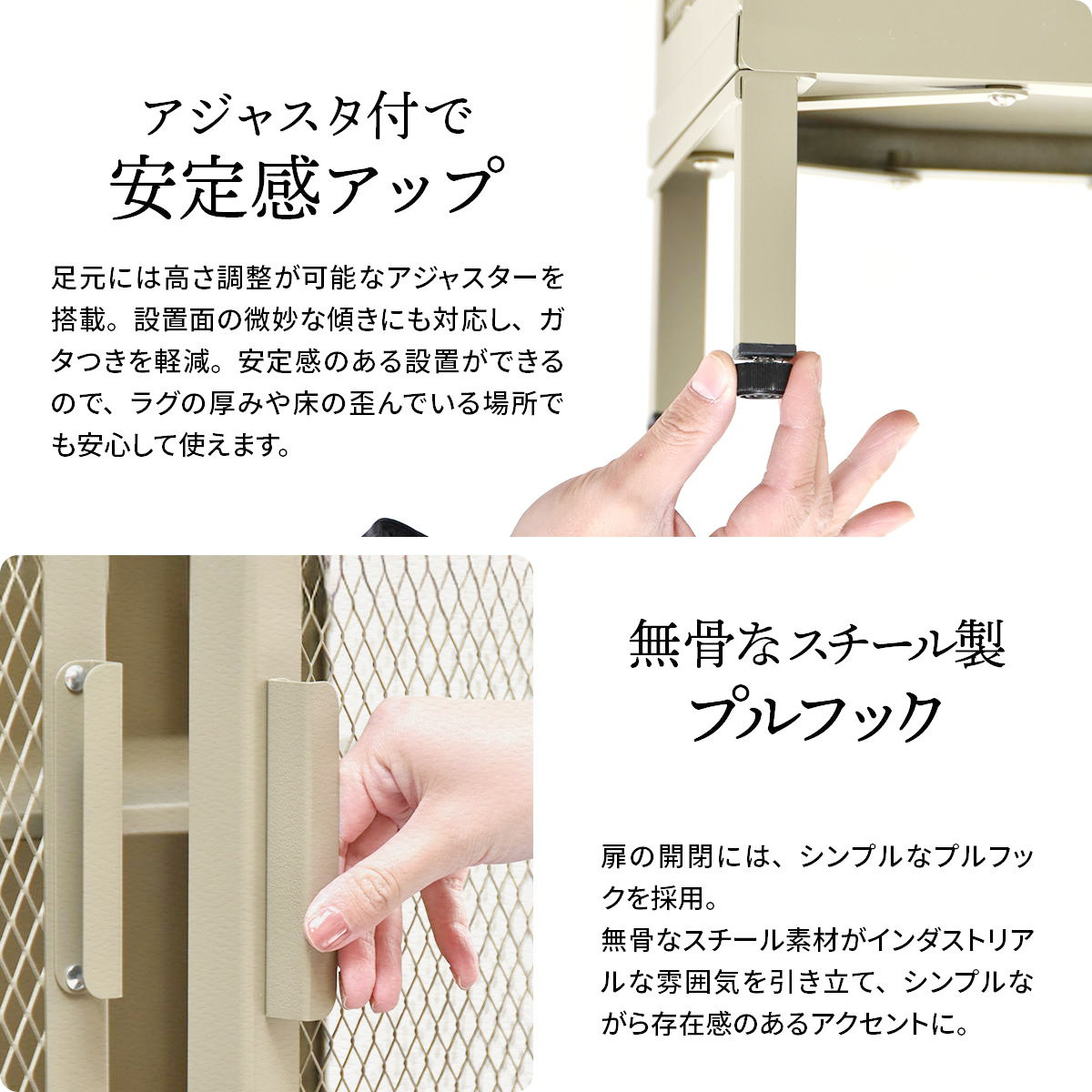 アメリカンヴィンテージをベースにした、洗練されたメッシュキャビネット。スチール×メッシュが生む抜け感が魅力の「見せる収納」です。