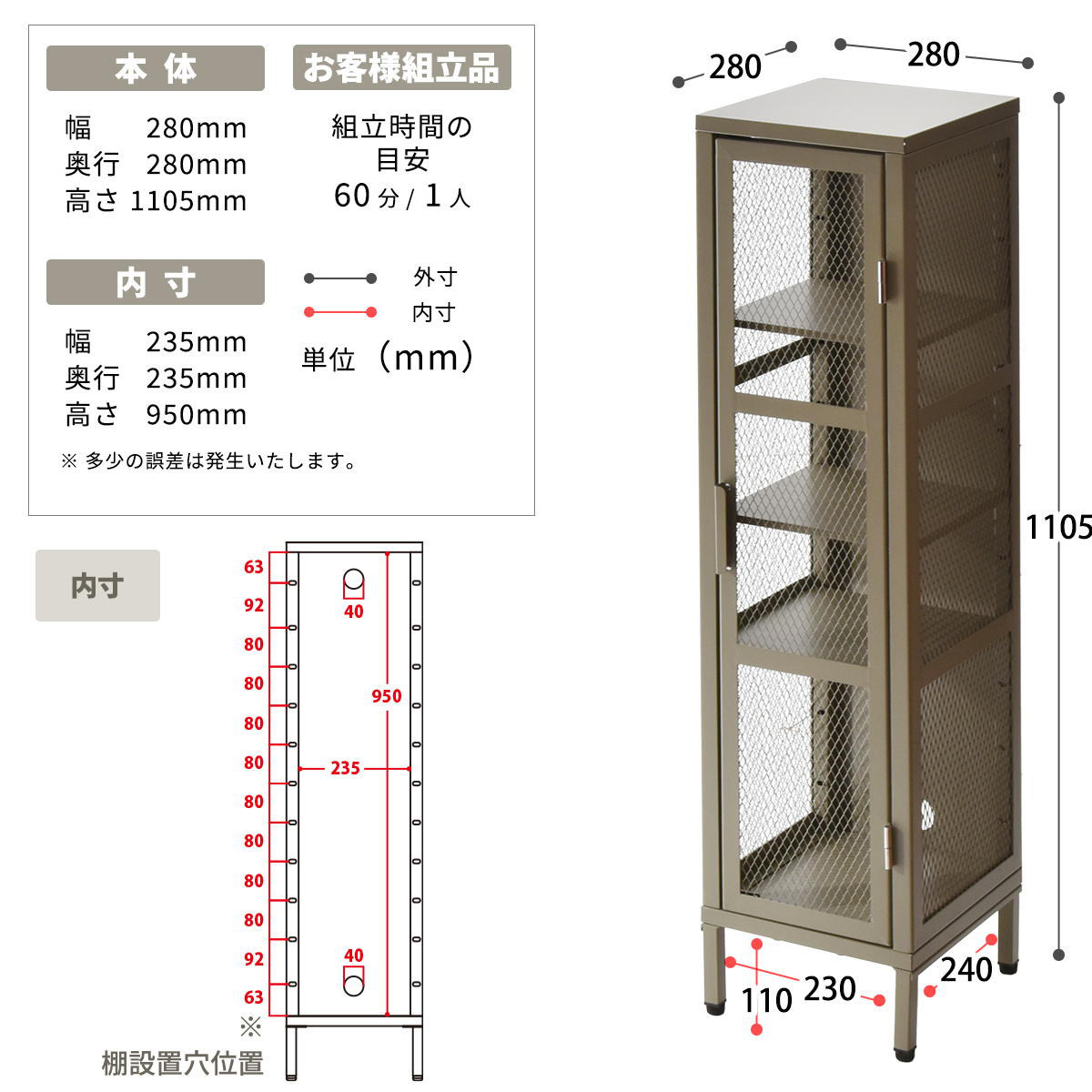 | サイズ | 外寸:約 幅28×奥行28×高さ110.5(cm) 内寸:約 幅23.5×奥行23.5×高さ95(cm) |