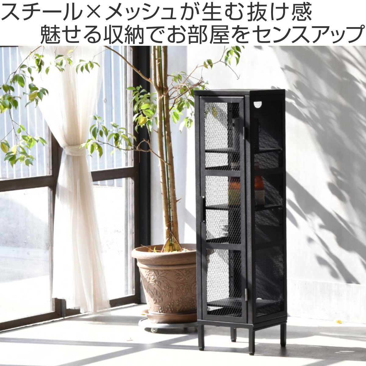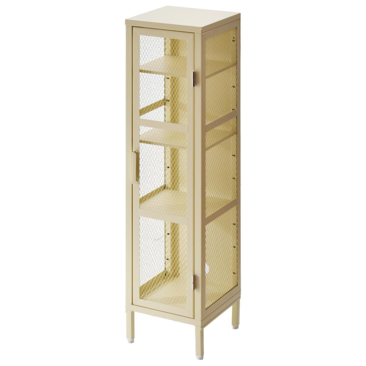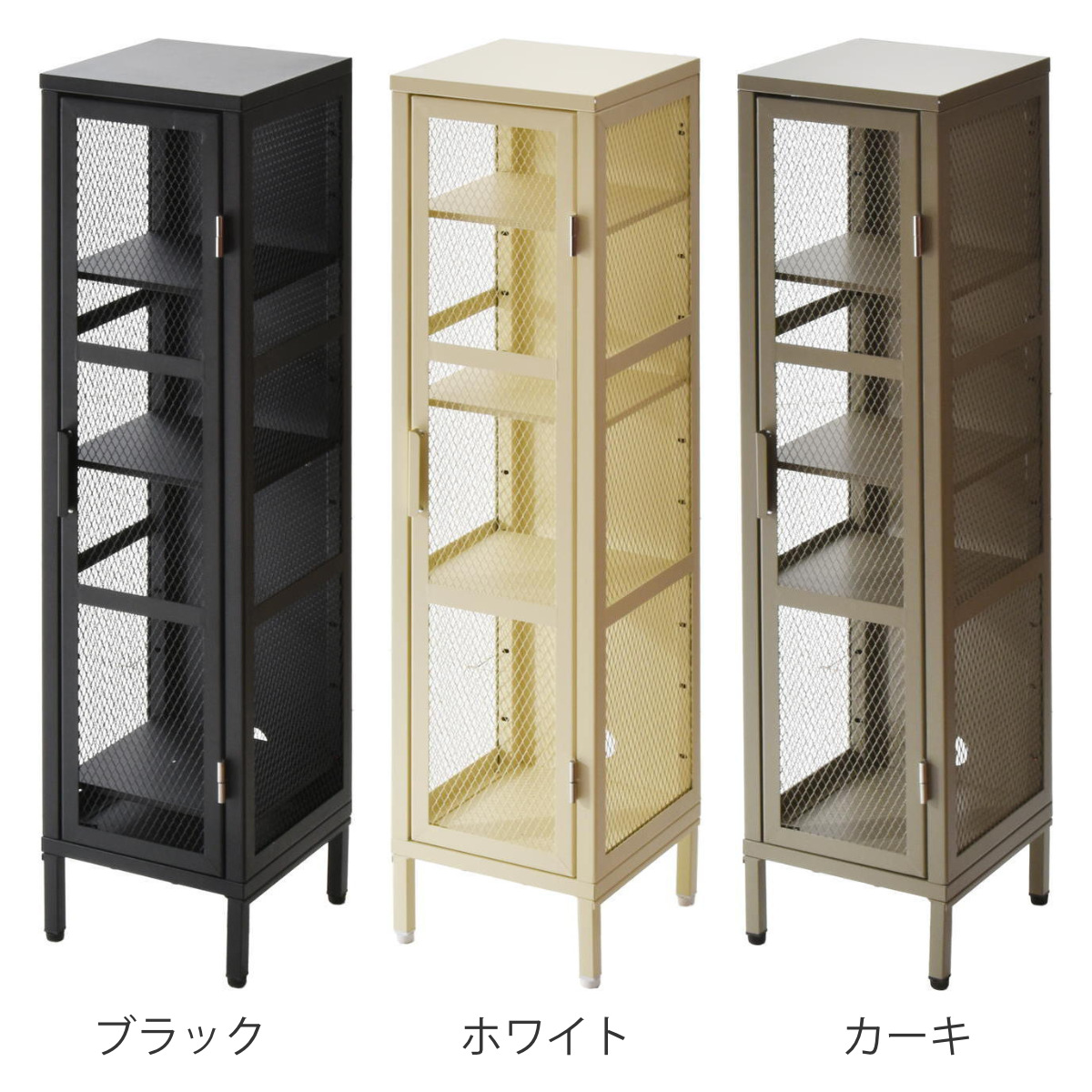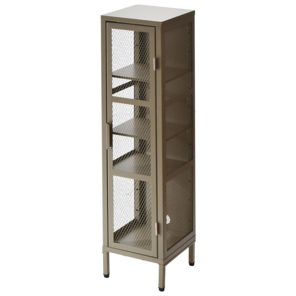 BURUCK スリムメッシュキャビネット 4段 ( キャビネット スチール 扉 片開き メッシュ 棚 幅28cm ラック 飾り棚 スリム ディスプレイ キッチン リビング シューズラック 小物収納 ブラック ホワイト カーキ ) 【カーキ】