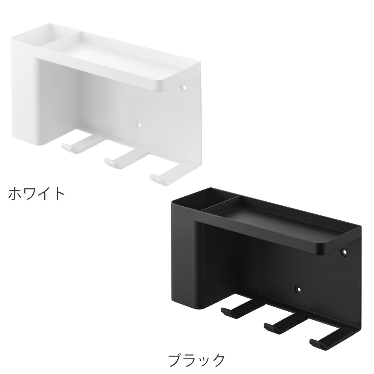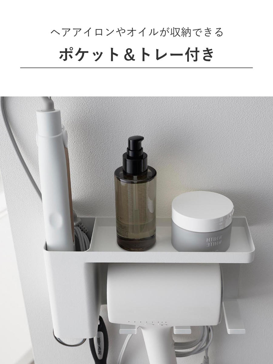 山崎実業 tower 壁付けドライヤー&ヘアーアイロンホルダー タワー トレー付き ( 4903208102544 タワーシリーズ ドライヤーホルダー 洗面所 ヘアーアイロンホルダー 壁付け 壁面収納 小物置き トレー ) 【ホワイト】