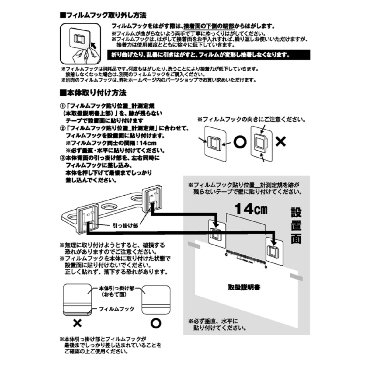 | 材質 | 本体:ABS樹脂 フィルムフック:ポリカーボネート・PET・ポリウレタン |