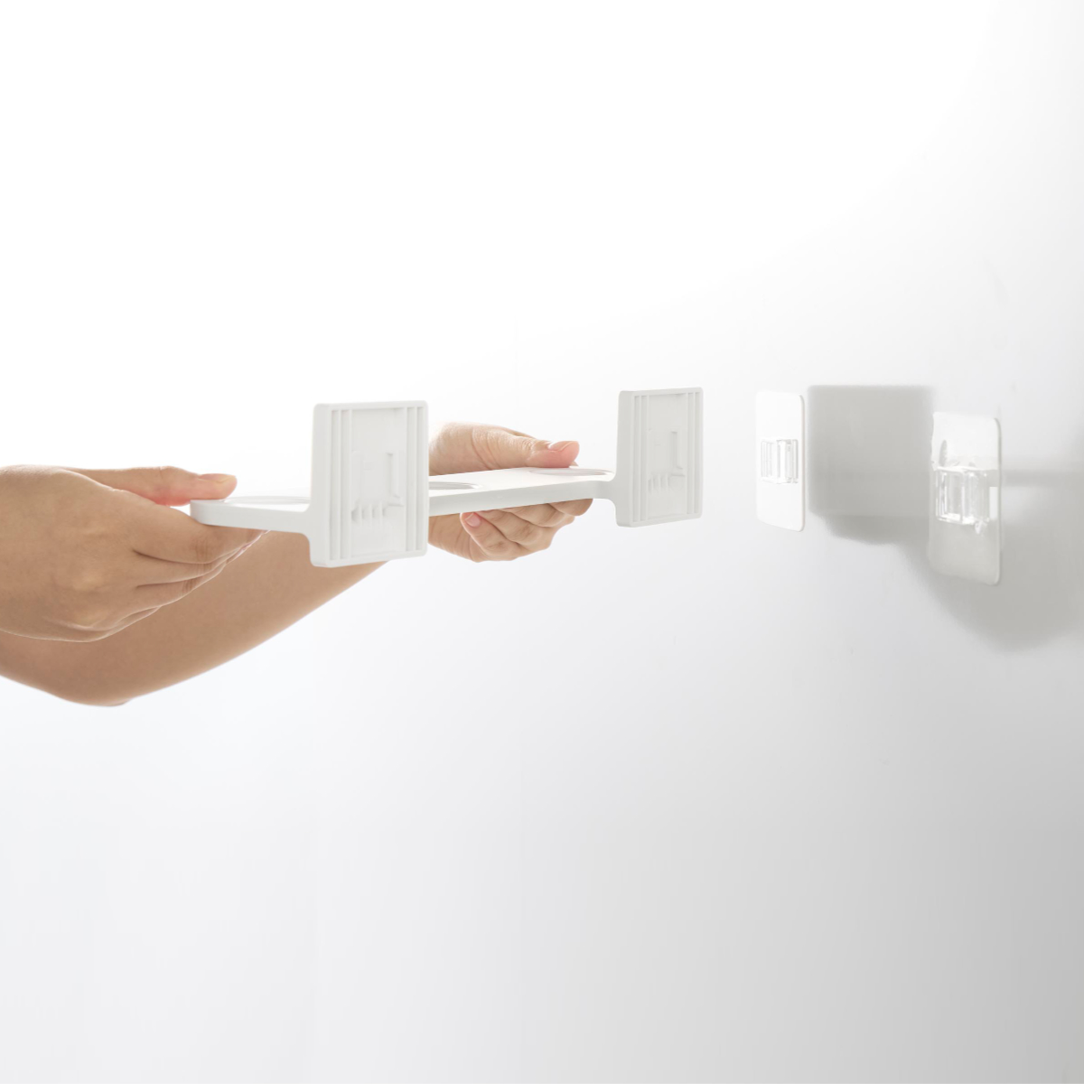 | サイズ | 【本体】 幅約 26×奥行約 8.5×高さ約 6(cm)(フィルムフック含まず) 【フィルムフック接着面】 幅約 6×高さ約 6(cm) 【ホルダー穴1か所あたり】 直径約 3.2(cm) 【補助リング】内径約 2.4cm・2.8cm 外径約 4cm |